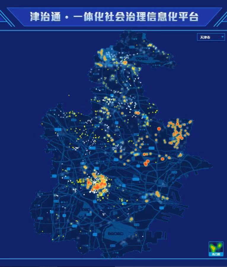 “津治通”平台除夕以来天津市域社会治理事件上报热力图(央广网发 天津市委网信办供图)