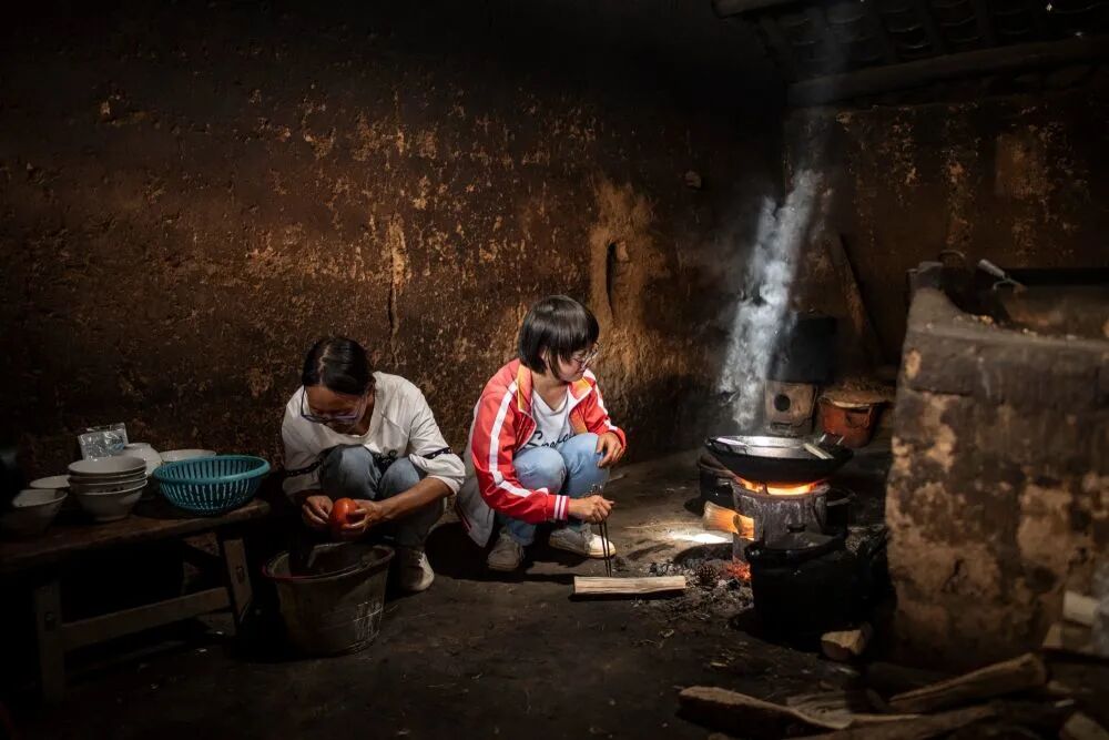 ↑范天兰(右)和姐姐一起在家做饭。新华社记者 江文耀 摄