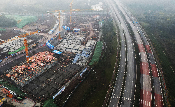 这是2020年12月30日拍摄的成资渝高速公路中和枢纽互通(无人机照片)。新华社记者 王曦 摄