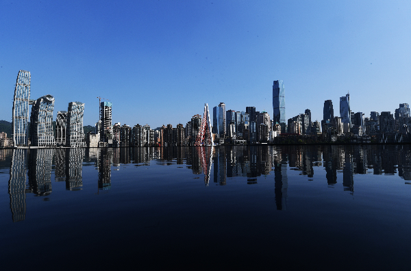 这是2020年12月21日拍摄的重庆江北嘴中央商务区(拼接照片)。新华社记者 刘潺 摄