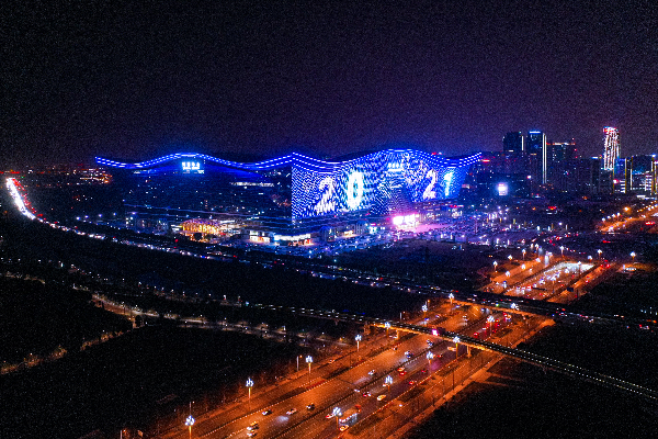这是2020年12月31日拍摄的成都市环球中心跨年灯光秀。新华社发(张可凡 摄)