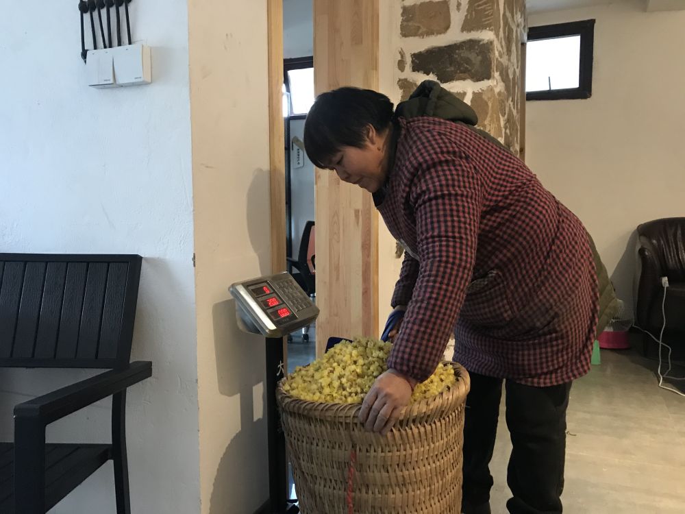 蜡梅精油的问世,也让梅农们尝到了增收的甜头。多年来,因鲜切花销量不高,更多的蜡梅花被当成中药材卖,散花价格仅每斤3元左右,不少花朵烂在树上和地里。为保证原料供应,李伟夫妇成立了专业合作社,散花收购价涨到了每斤6至8元。随着精油产量扩大,李伟夫妇把收购范围扩大到了整个静观镇,受益的梅农越来越多。