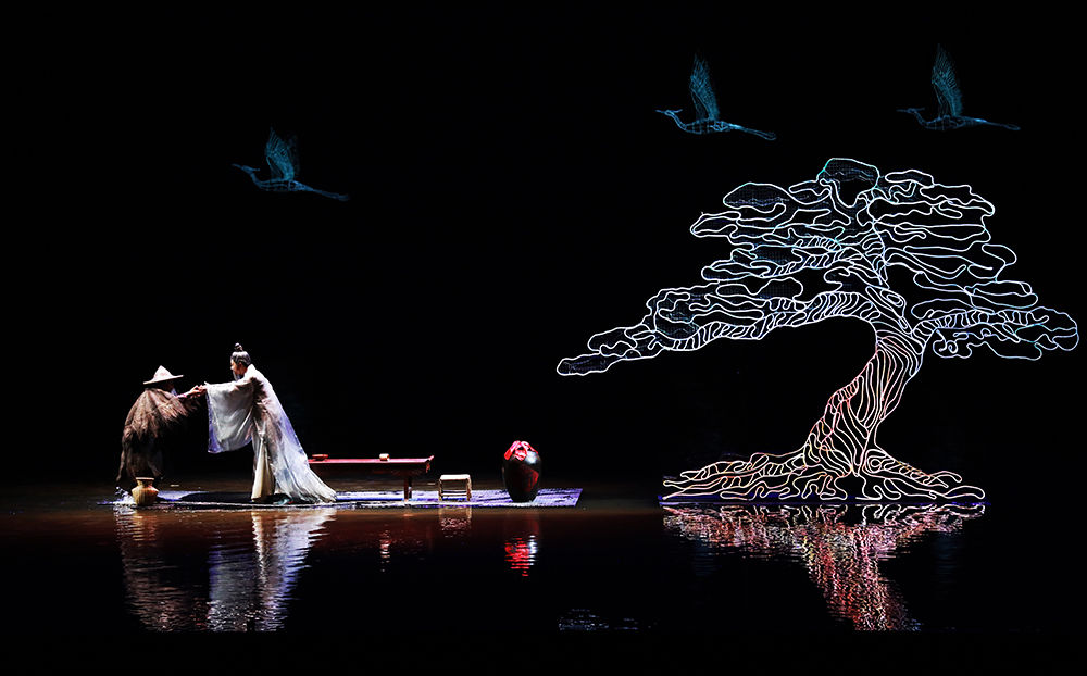 ↑重庆奉节《归来三峡》实景演出(2019年3月28日摄)。新华社记者 王全超 摄