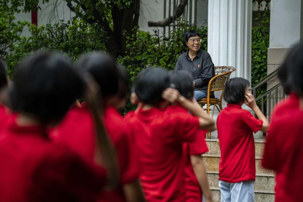 云南丽江华坪女子高级中学校长张桂梅观看新生学习课间操(8月24日摄)。新华社记者江文耀摄