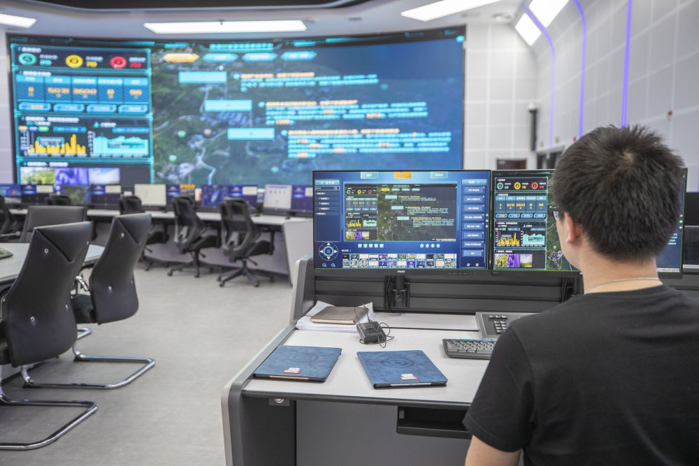 4月26日,在智慧开州大数据运营中心,工作人员在查看实时数据。 新华社记者黄伟 摄