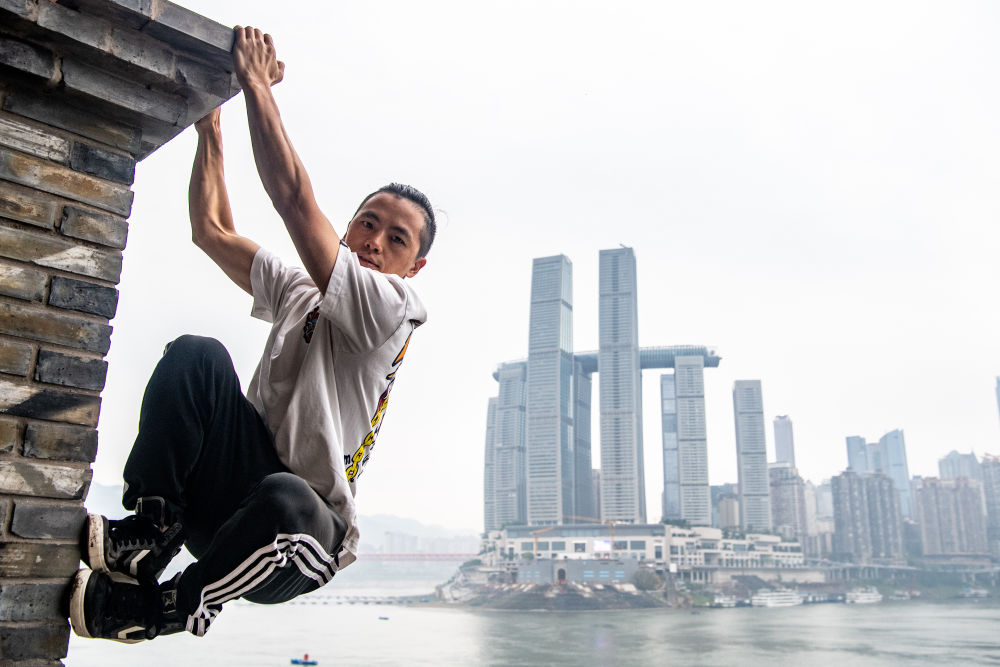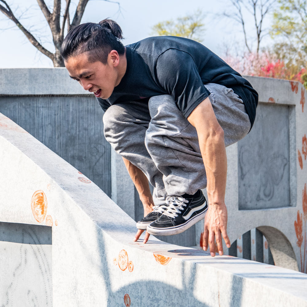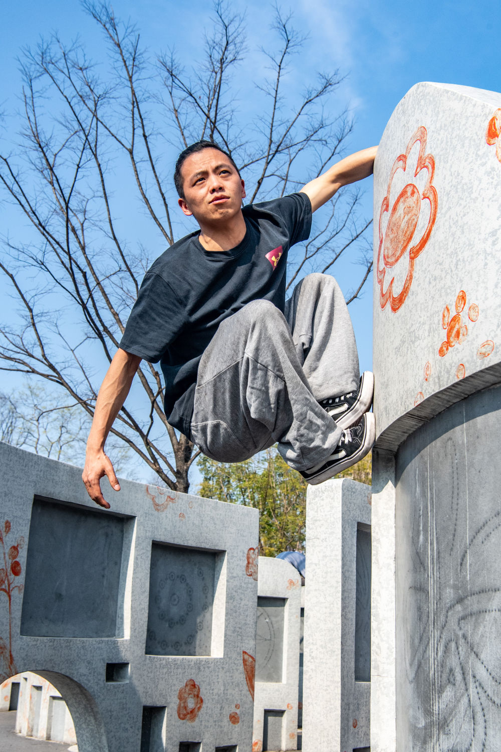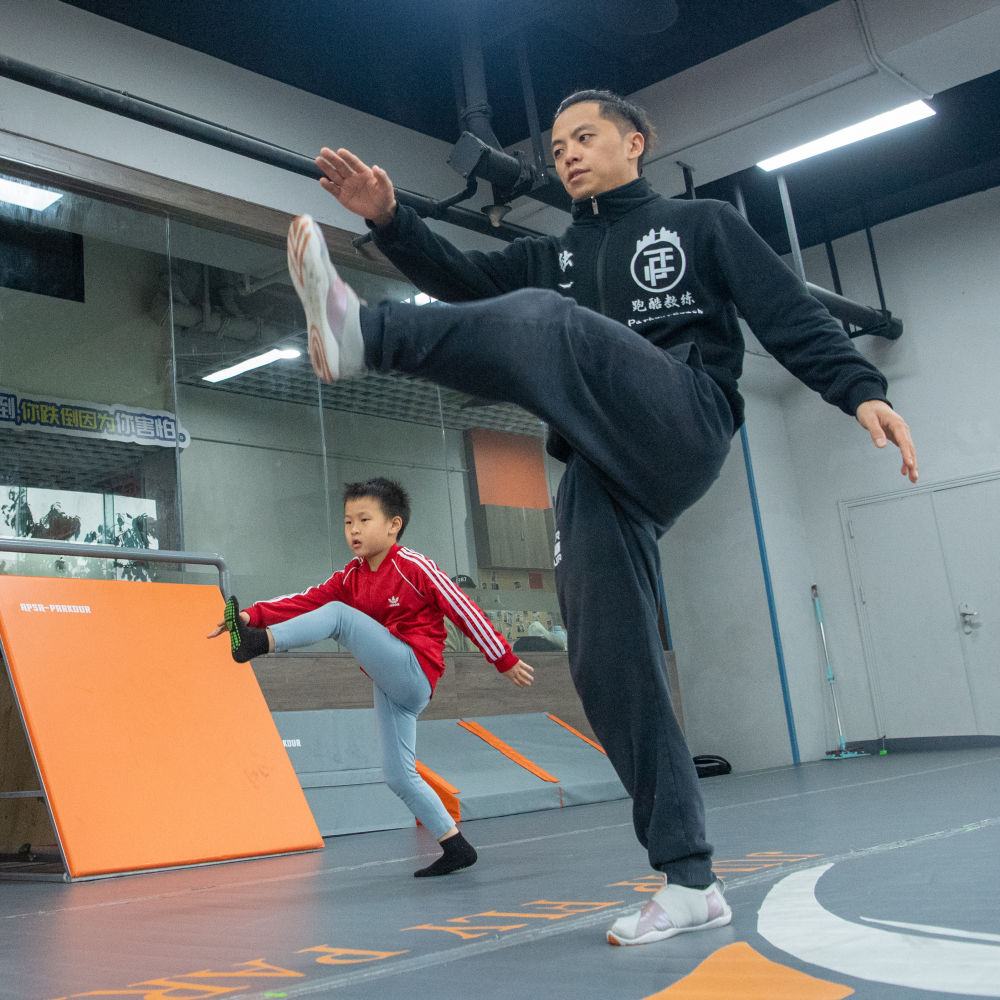 32岁的文舜尧是一名跑酷俱乐部的教练