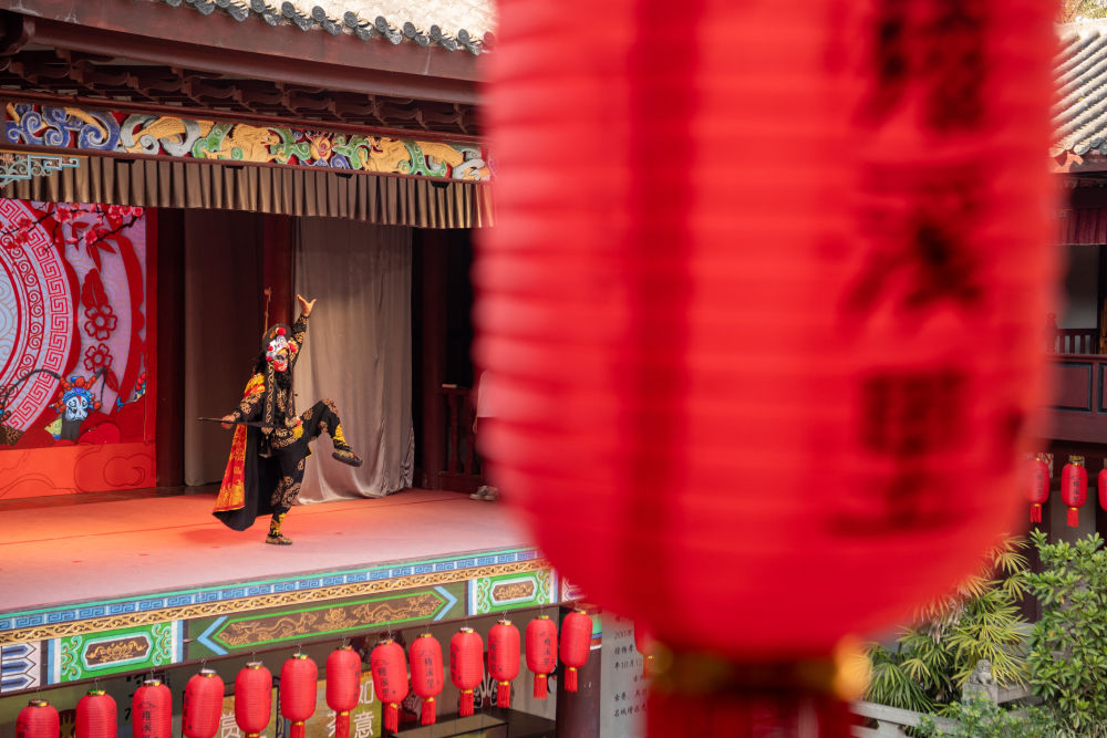 ↑2022年3月8日,艺人在位于大足区的雍溪古镇为游客表演。