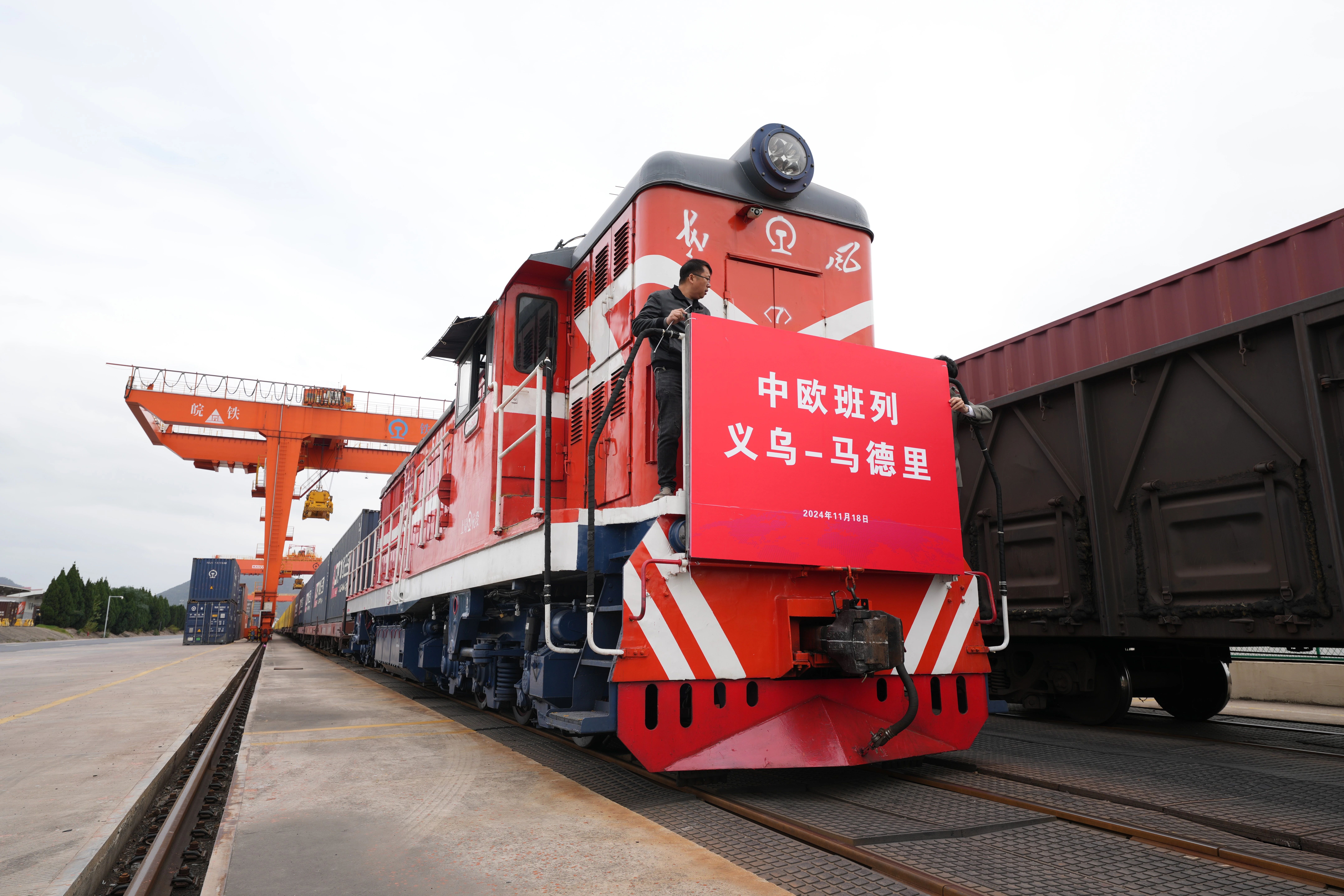 18日10时许,一趟满载110个标准箱日用百货、汽车配件、机械设备等出口货物的中欧班列从铁路义乌西站驶出,驶往逾万公里外的西班牙马德里。当天,义乌中欧班列迎来开行十周年。