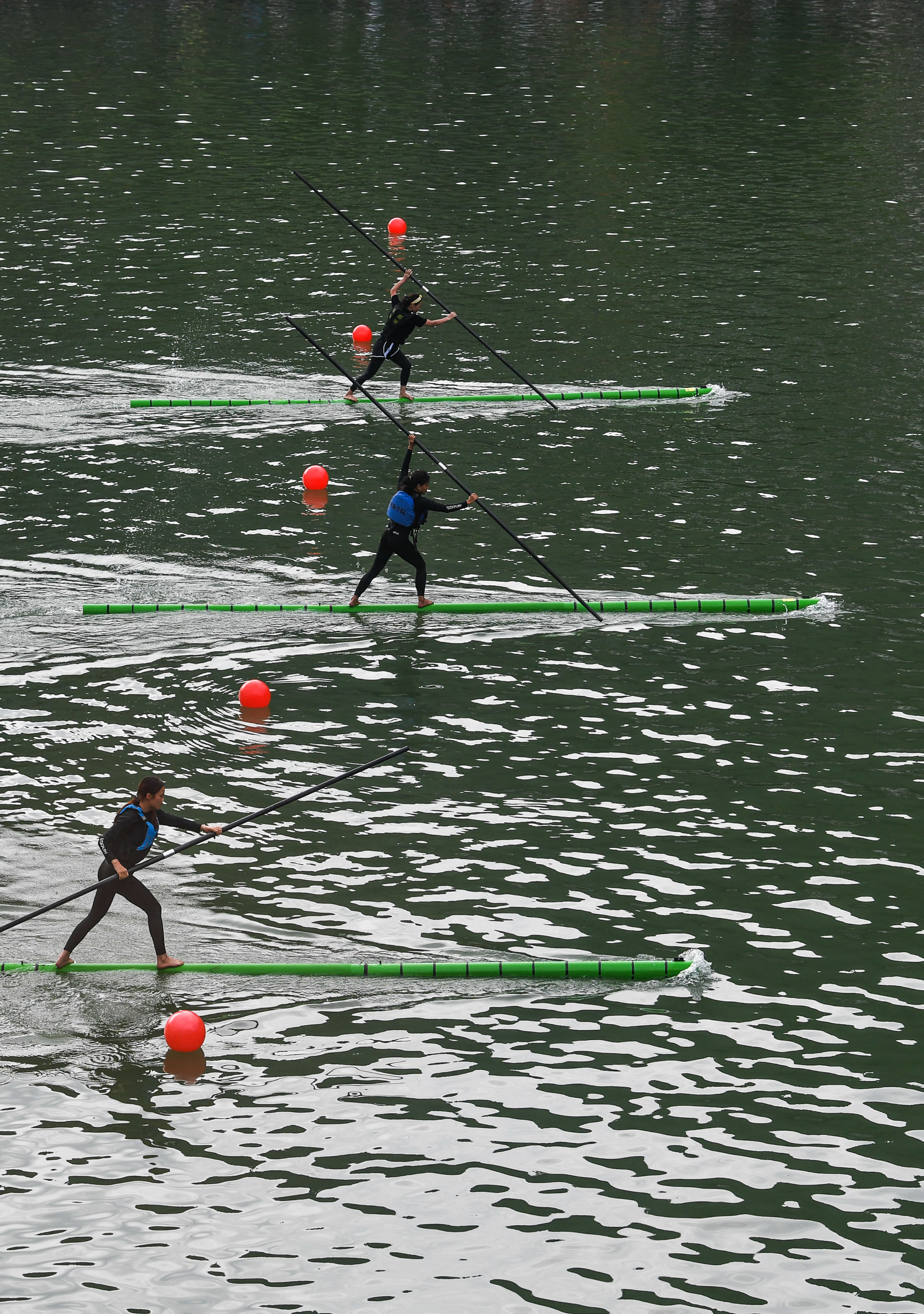 6月11日,选手在贵州省镇远县㵲阳河上进行独竹漂比赛。新华社记者 杨文斌 摄