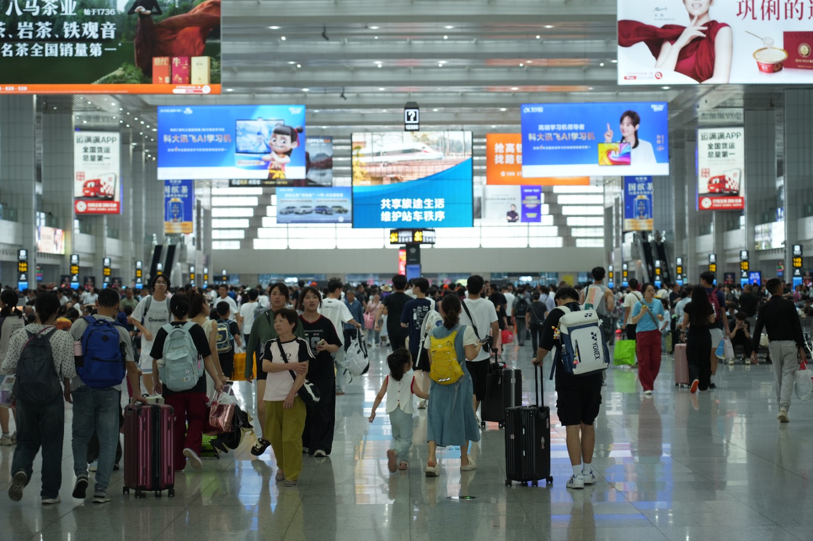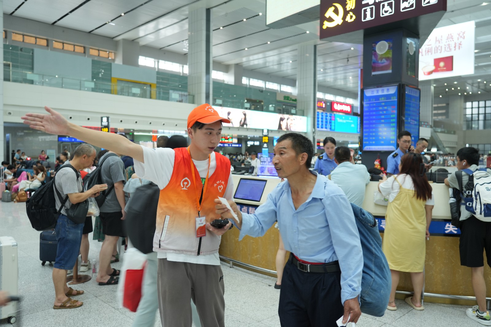 青年志愿者引导旅客前往检票口(魏伟 摄)