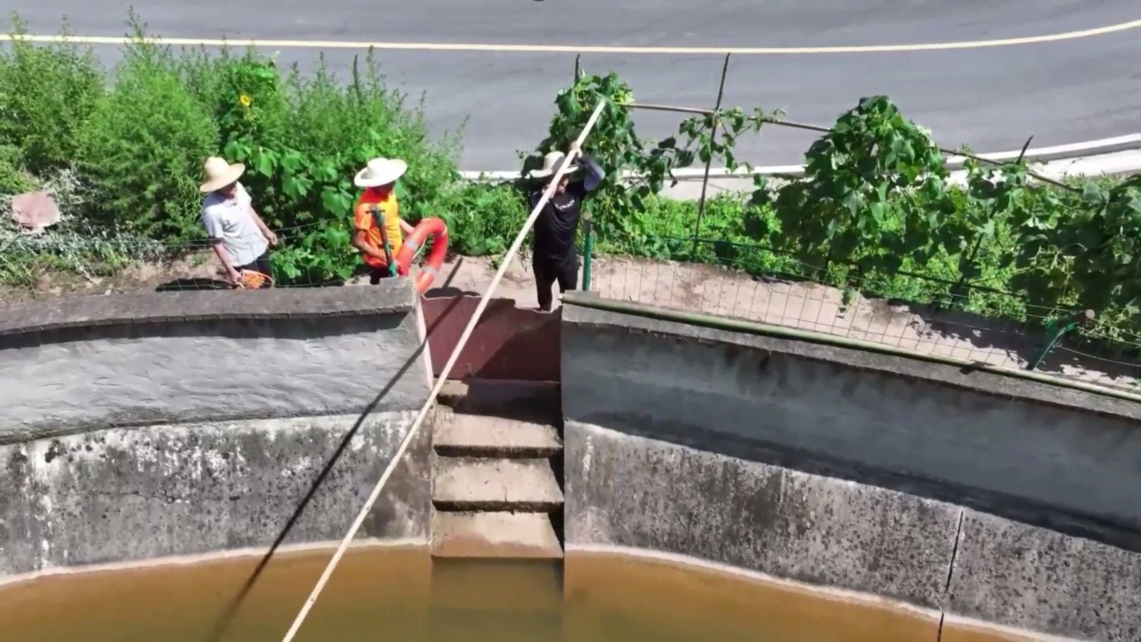 7月9日,记者在忠县白石镇万板村见到,驻村工作队队员协同村干部正在对辖区山坪塘开展安全检查,并放置救生设施,方便紧急救援时使用。同时,提醒附近村民,尤其是学生群体,切勿下塘下河游泳,确保自身安全。
