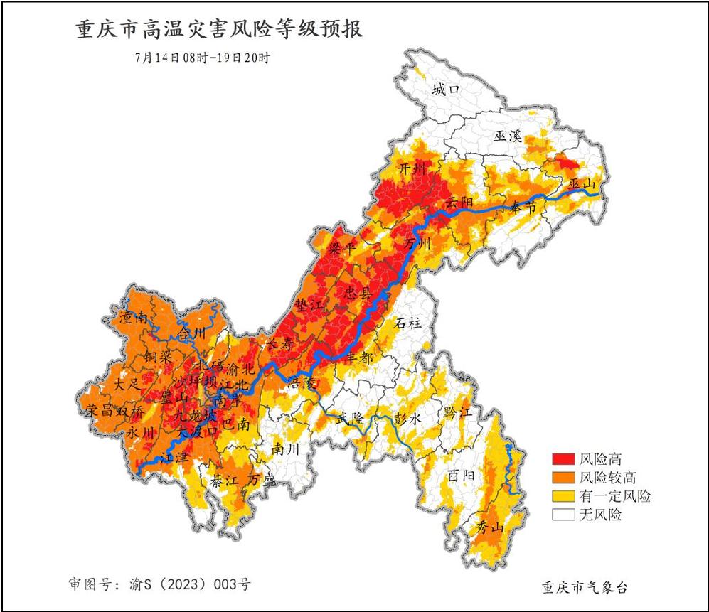 受持续高温天气影响,重庆部分地区高温灾害风险高。在此提示: