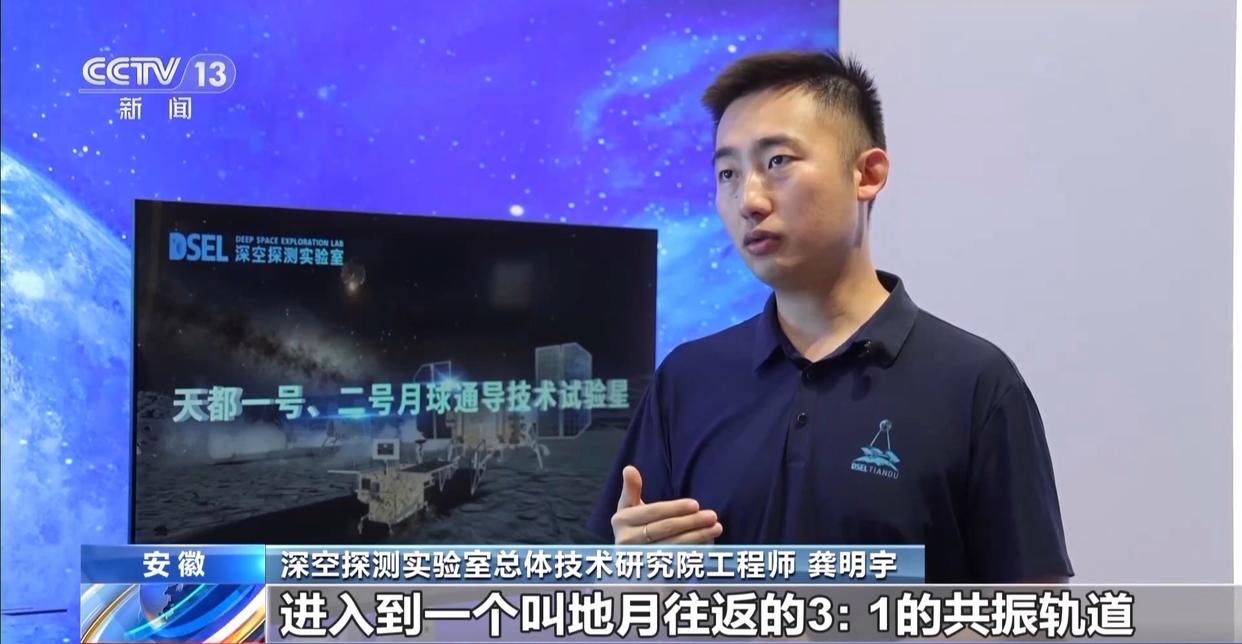 深空探测实验室总体技术研究院工程师 龚明宇:从之前的轨道上进行变轨,然后重新飞向地球,进入到一个地月往返的3: 1的共振轨道。这个轨道是全球首次飞,它为未来我们地月经济圈的建设,包括地月往返航班的建设会提供一个参考。同时它还会择机去做一些通信导航相关的新技术实验,继续深化我们的成果。