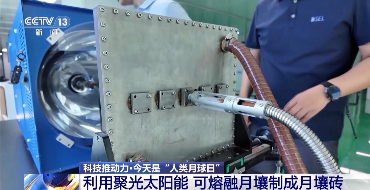 工作人员正在调试的这台设备,就是我国首台月壤打砖机,其核心原理是利用聚光太阳能,将月壤高温熔融,制成月壤砖。