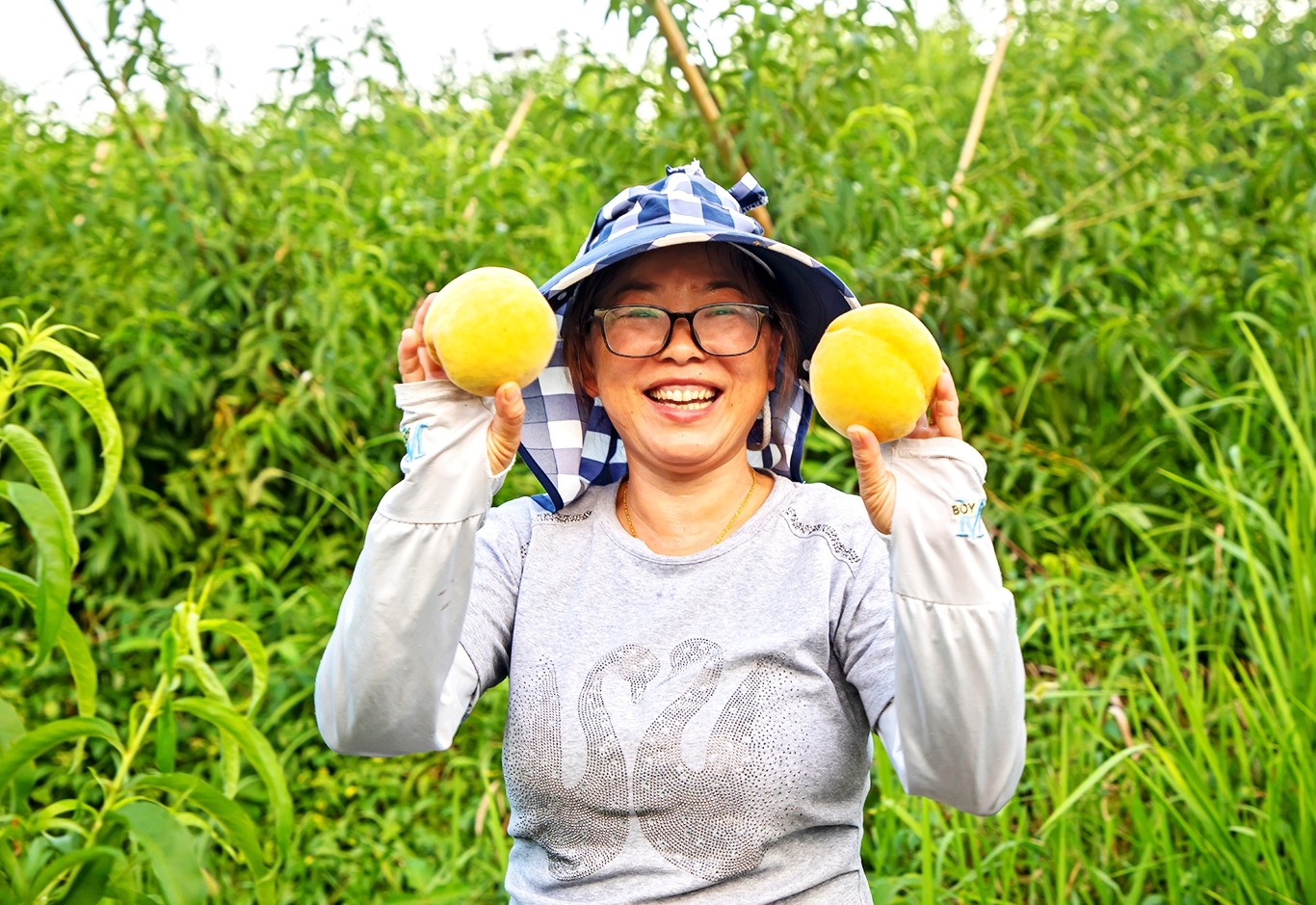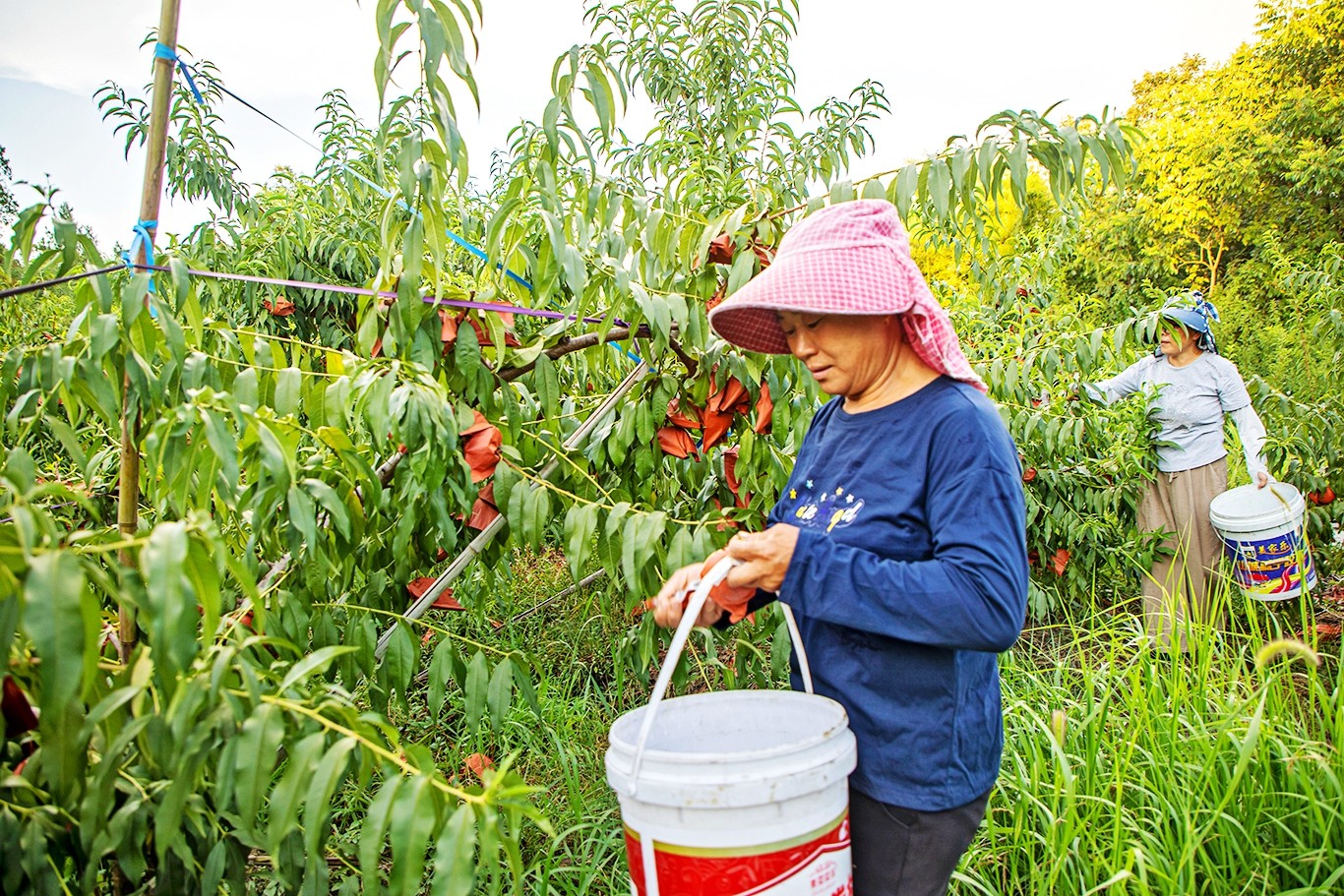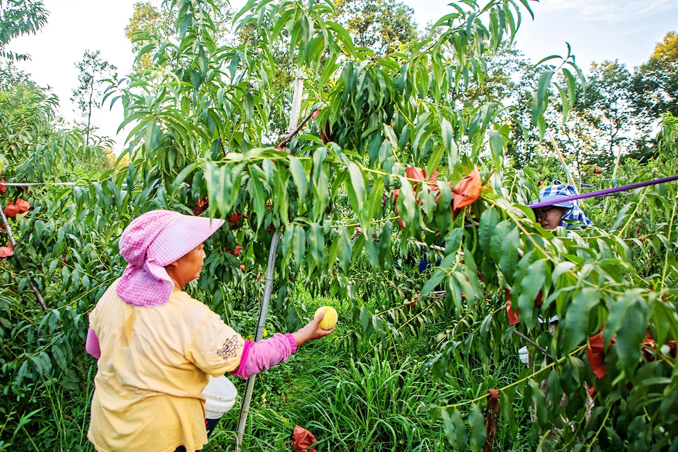 采摘黄桃。余鸿 摄
