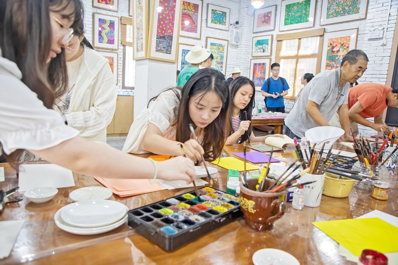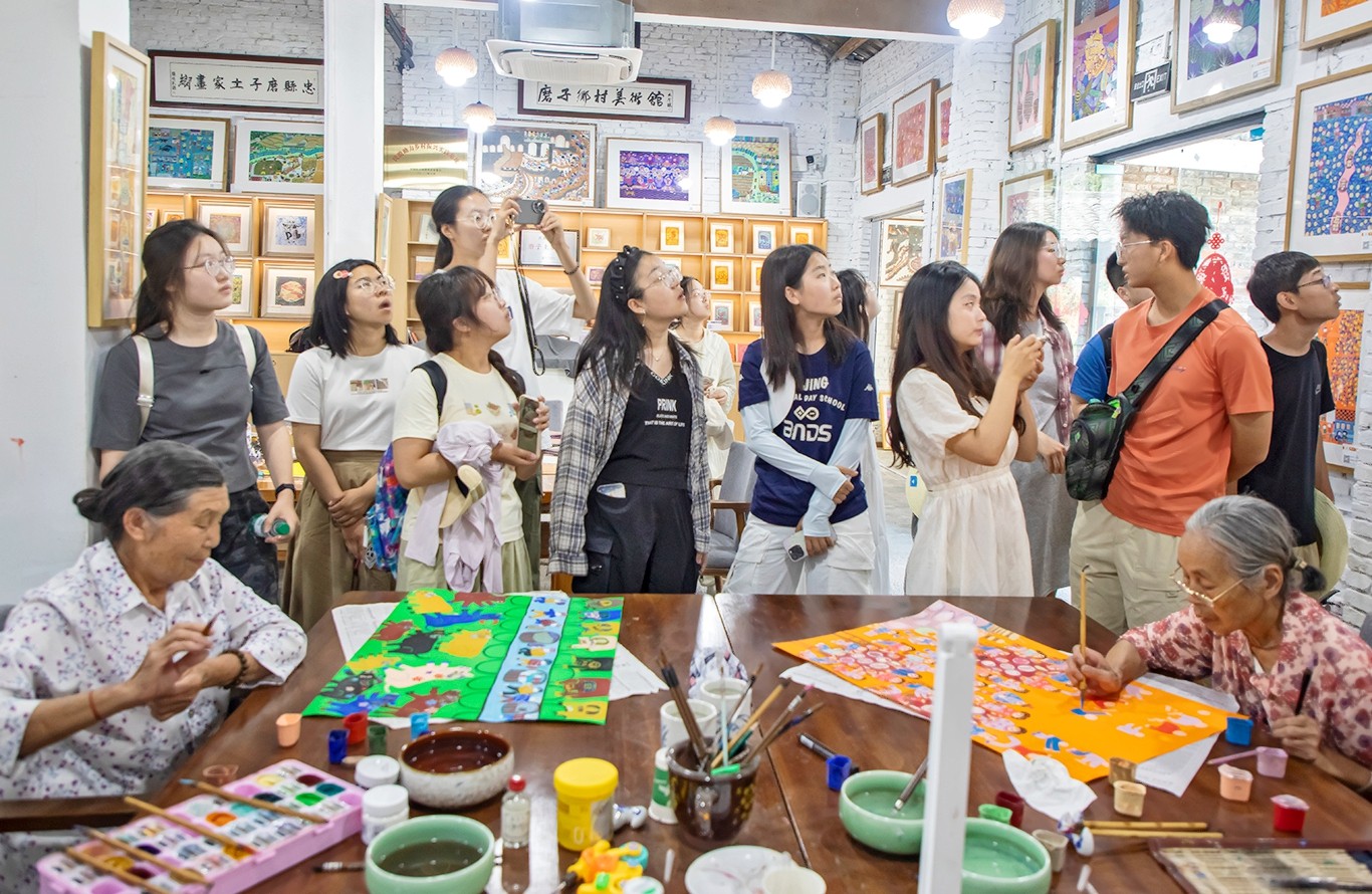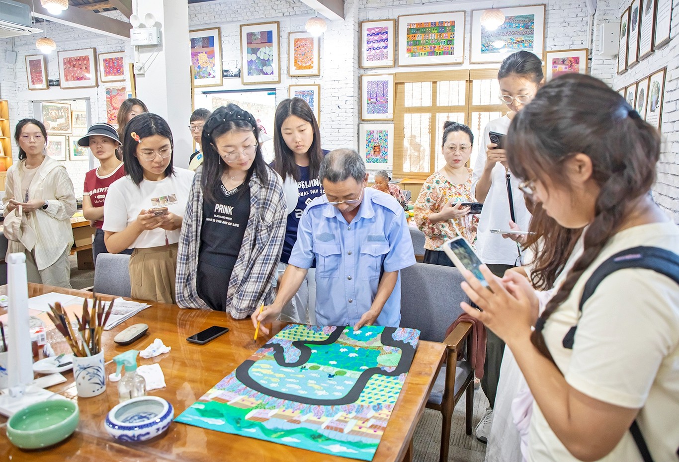 学生让农民画工修改自己的绘画作品。余鸿 摄