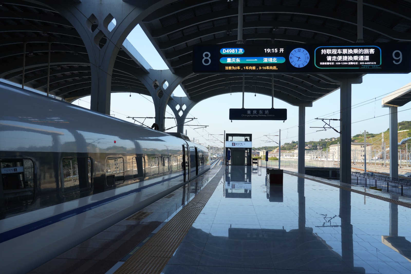 首趟重庆开往深圳的高铁动卧D4981次列车在重庆东站8站台(魏伟 摄)
