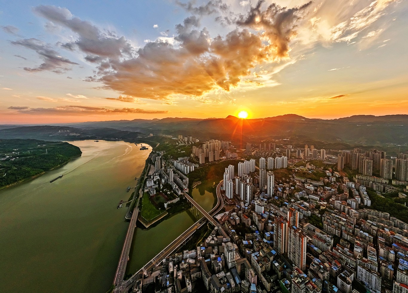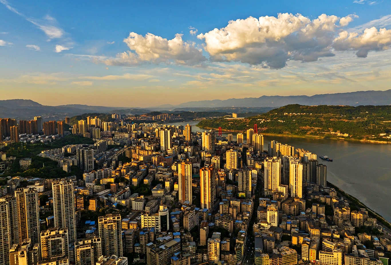 碧水环绕,彩云飞舞。8月18日傍晚,在夕阳映射下,忠县城宛如一幅绝美画卷,尽显诗意山水和浓浓秋意。
