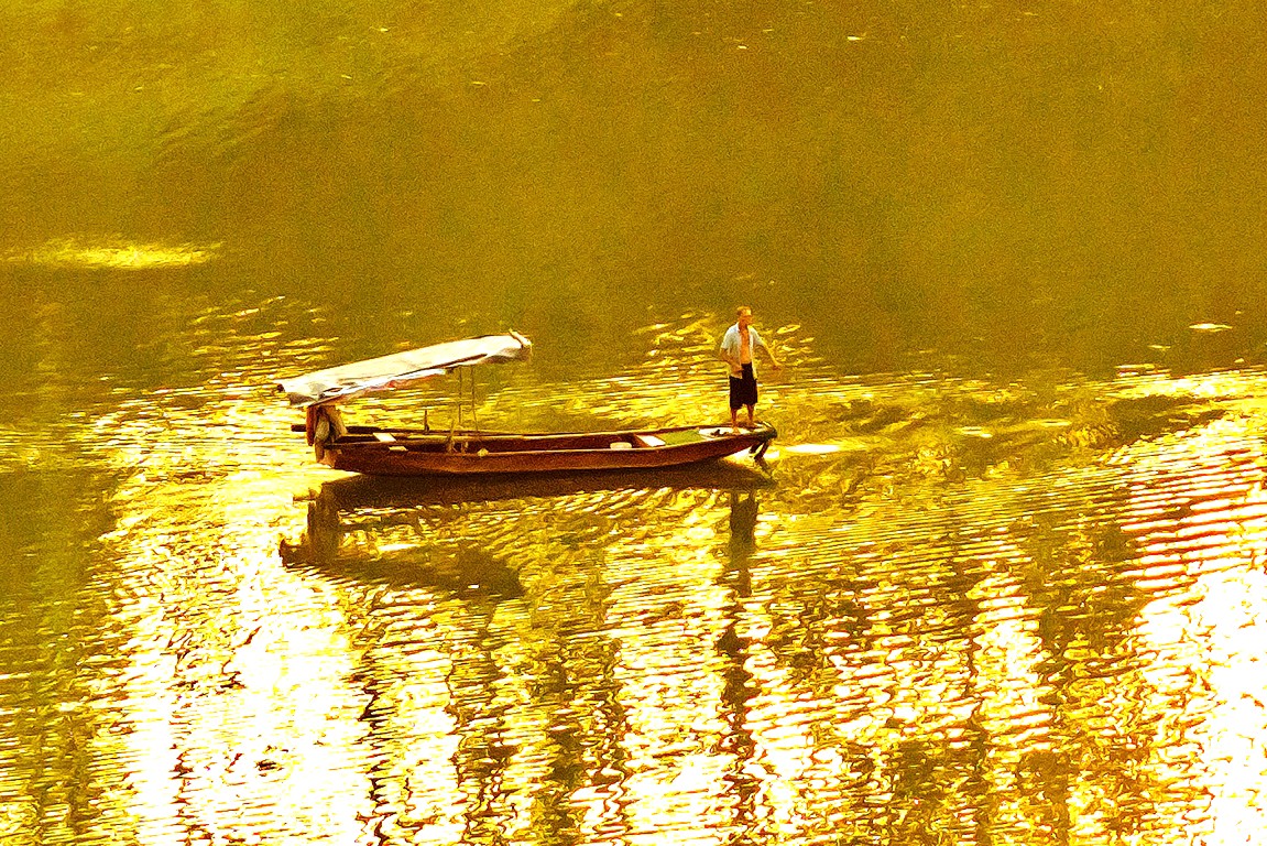 扁舟晕开满湖诗意。余鸿 摄
