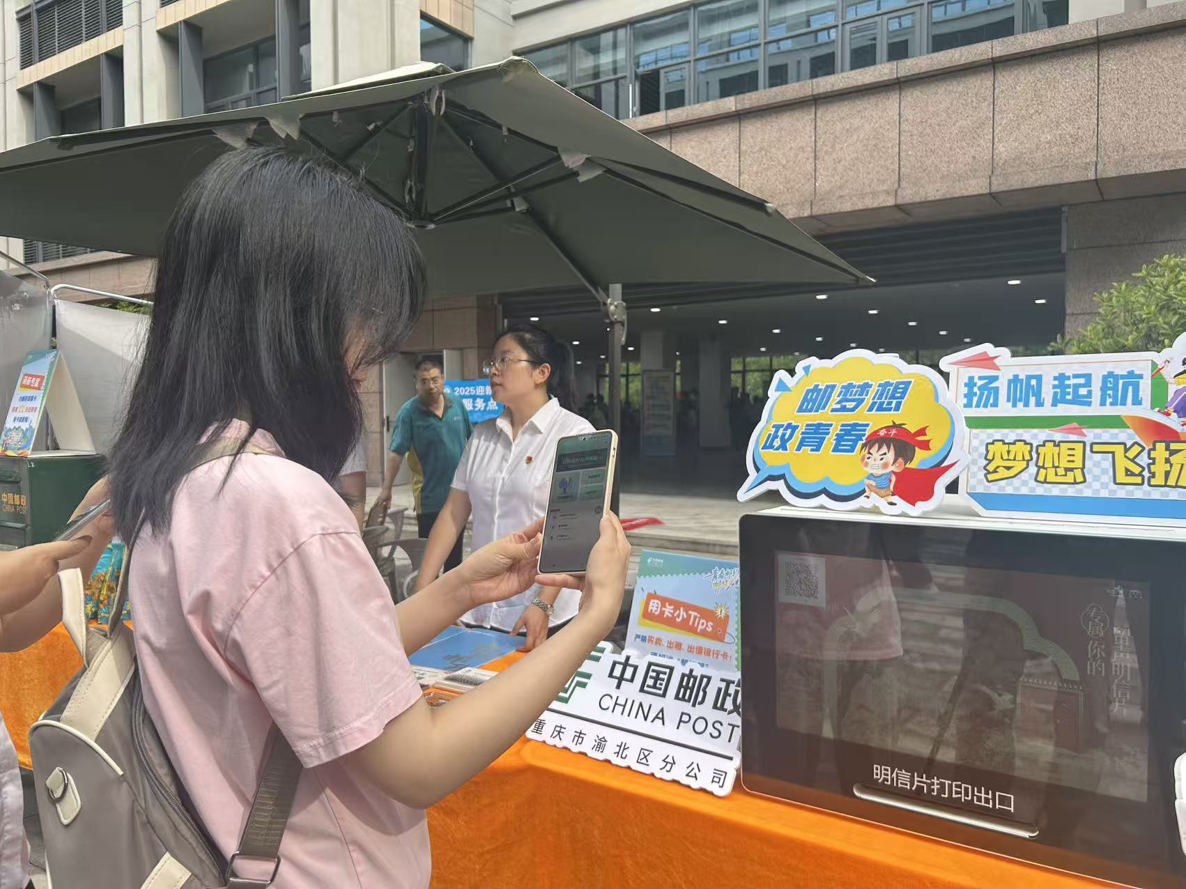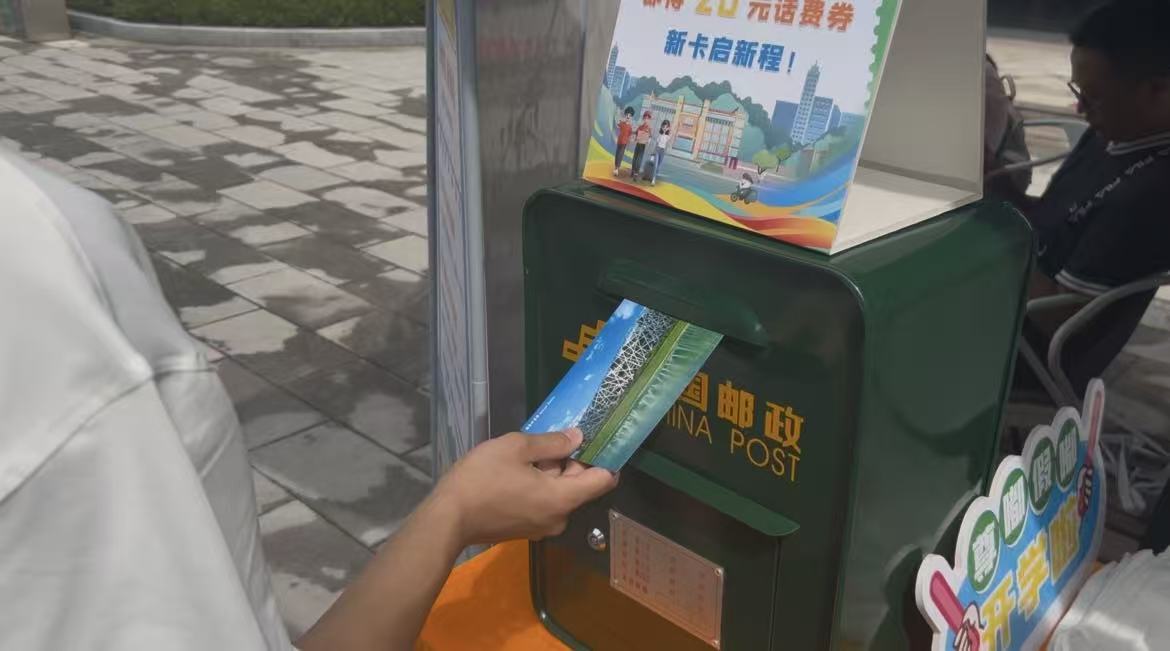 9月11日,在重庆理工大学两江校区的新生报到处,邮政多功能服务区吸引新生踊跃参与活动。青年志愿者们秒变“活地图”,为新生和家长们指路、提供咨询。同时,他们化身“贴心小老师”,手把手教大家玩转DIY有声明信片。这种自带邮资的明信片不仅可以设置自己喜欢的照片,还可以以二维码的方式记录一段声音,寄给家人朋友。大学新生彭星竣说,没想到入学第一天就遇到这么有趣的活动,可以免费自主DIY有声明信片。我要把这张明信片寄给高中的好朋友,分享大学的新生活。