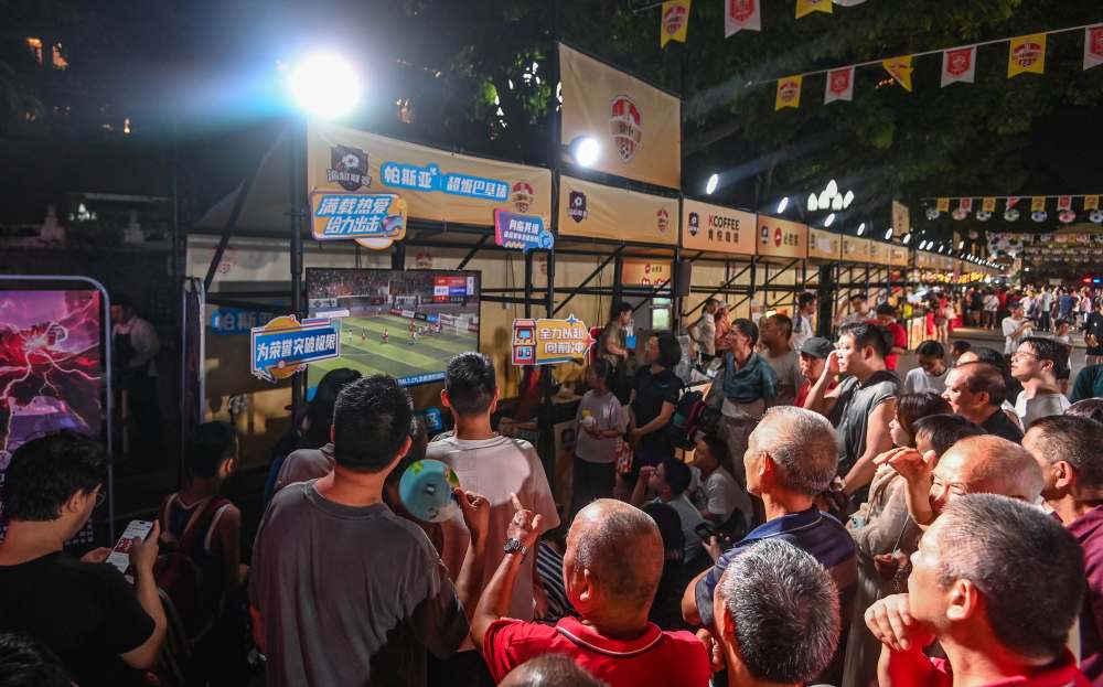 ▲9月13日,渝中区大田湾体育场,2025年重庆城市足球超级联赛揭幕战比赛中,市民在场外关注比赛。记者 郑宇 摄
