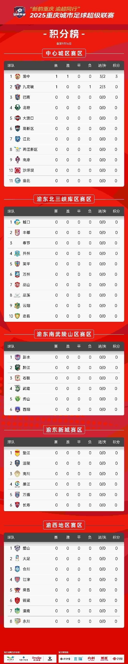 ▲“渝超”最新积分榜。组委会供图