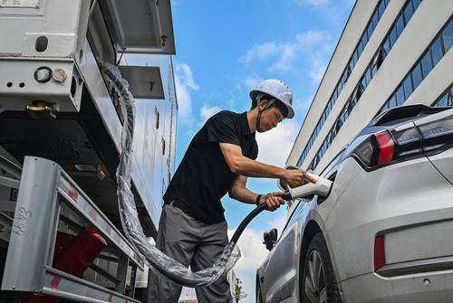 “举例来说,如果是电池容量为100千瓦时的新能源车,即电池储存100度电,我们的储能车能给大约30辆新能源车充满电,并且它有6把充电枪,可供6辆车同时充电,一把充电枪的最大输出功率可达到160千瓦。”他说。