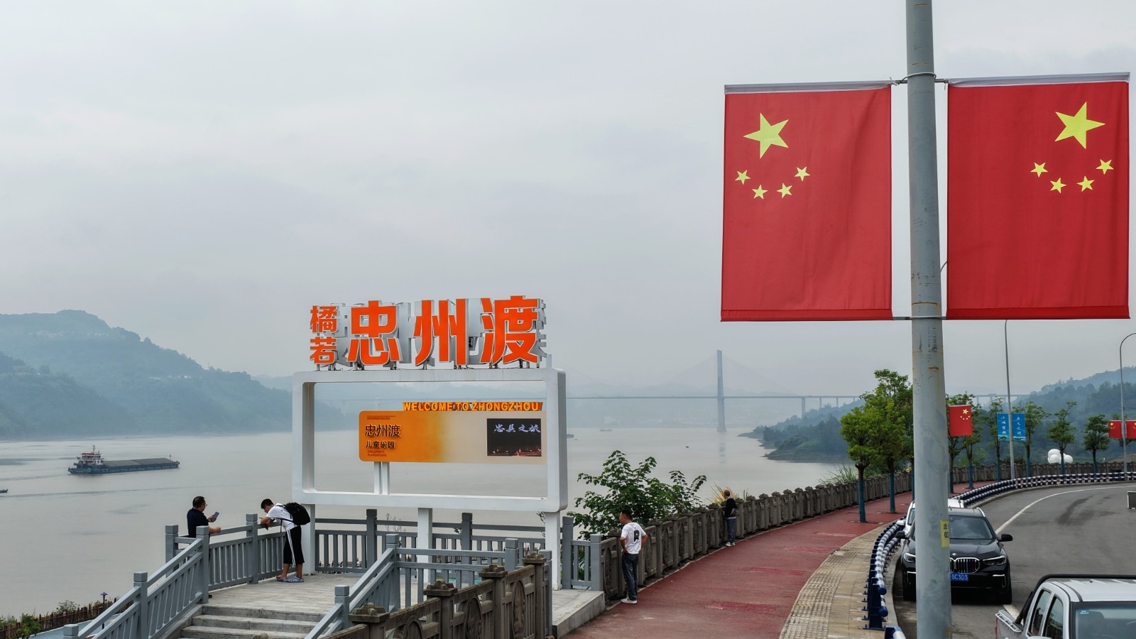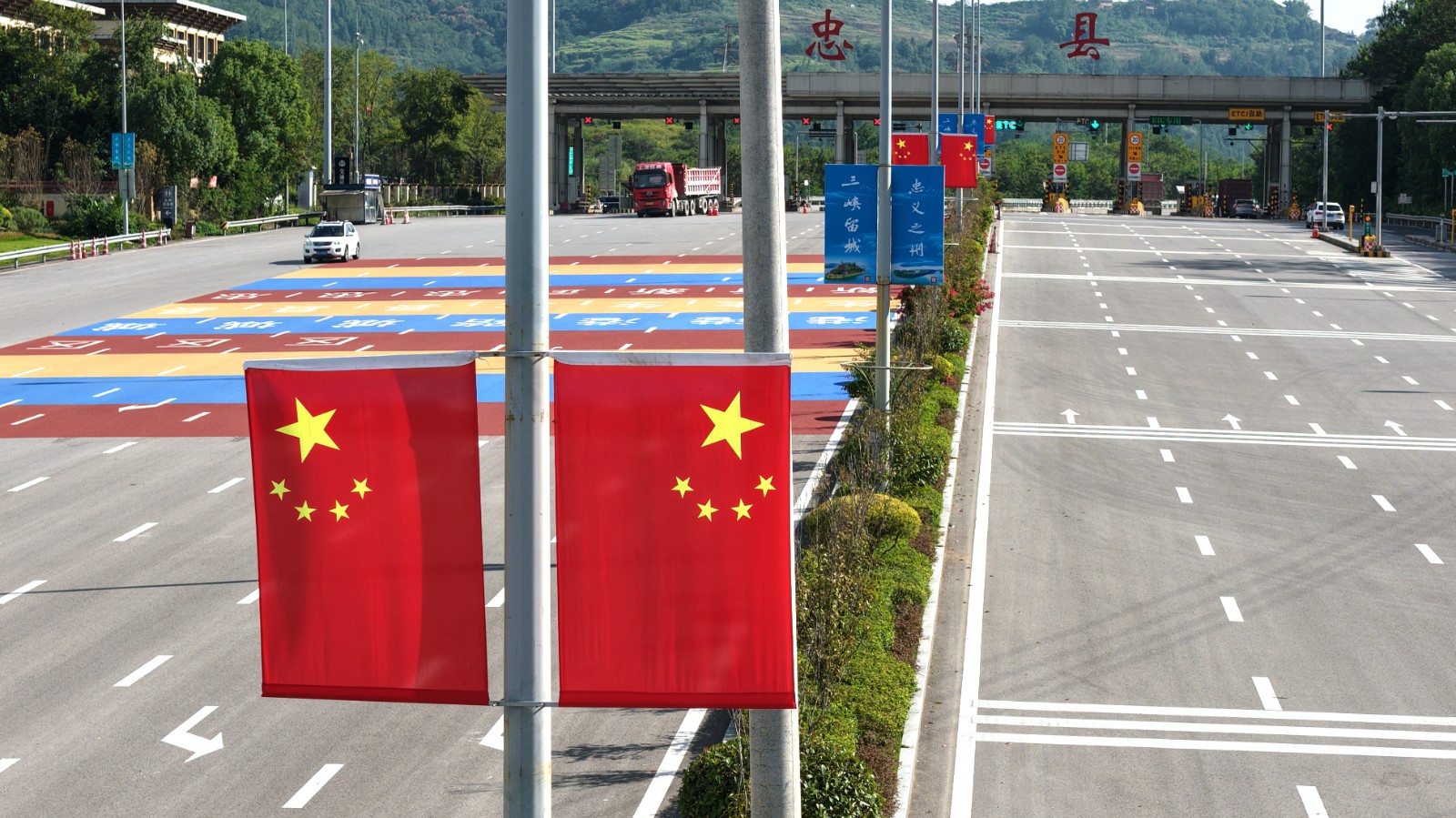 G50沪渝高速忠县互通悬挂着鲜艳的五星红旗。赵军 摄