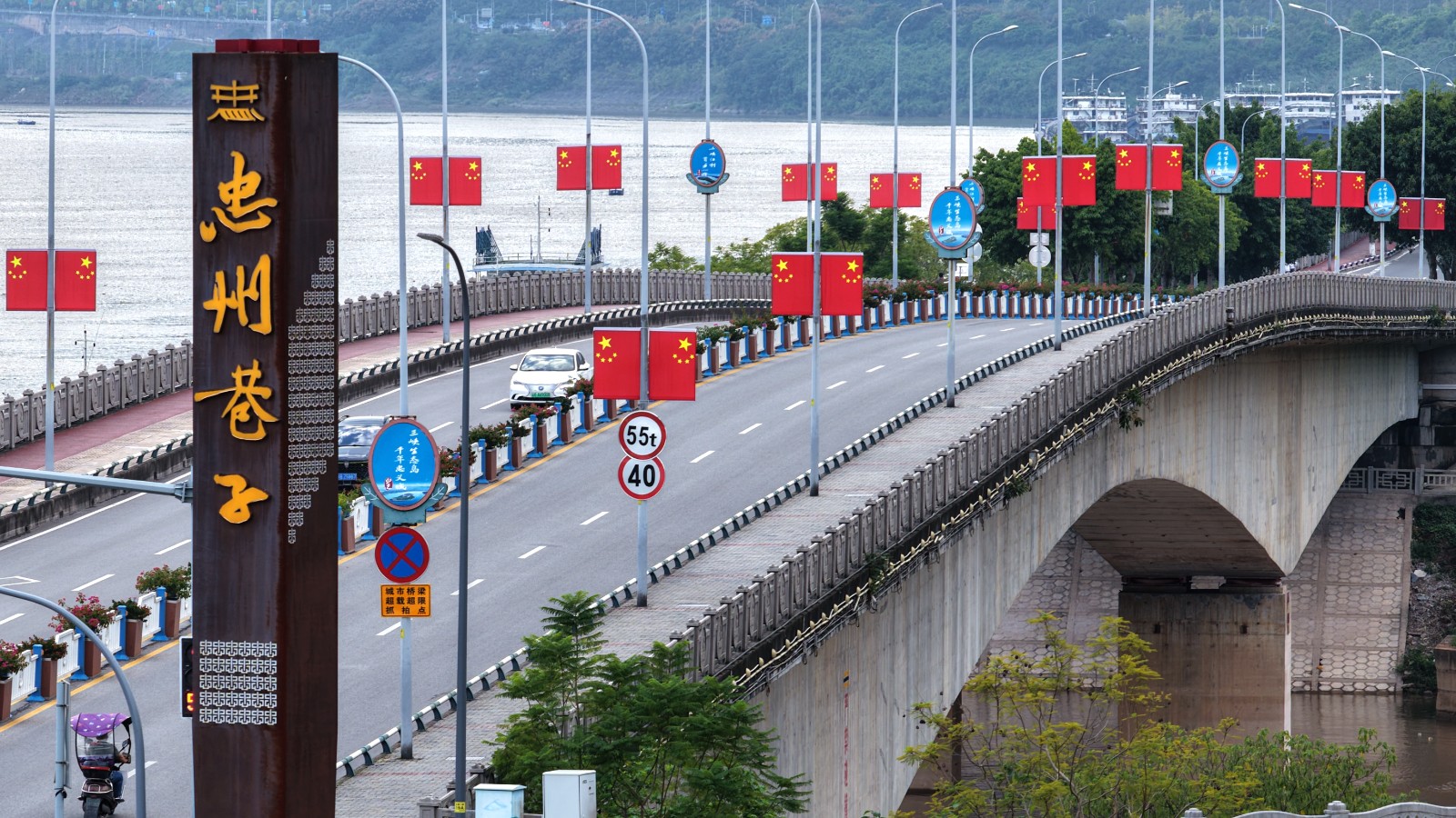 忠县城区国旗飘扬,处处洋溢着浓浓的节日氛围。赵军 摄
