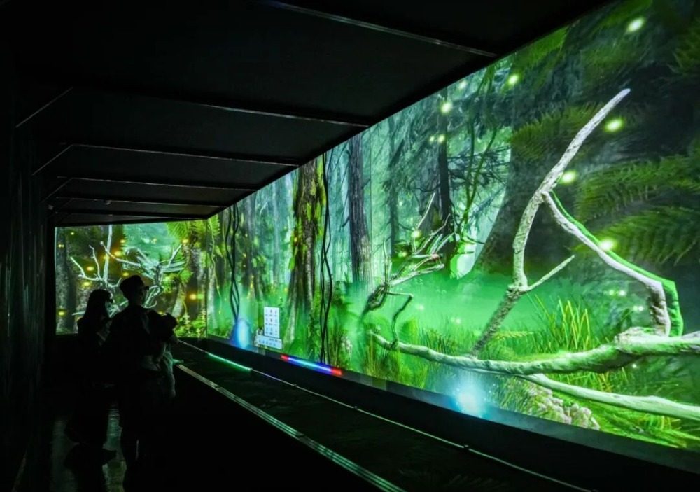 更令人瞩目的是该馆全息动物园推出的全新主题体验活动——“我们都是中国龙”。这一沉浸式项目打破传统观展模式,运用先进的全息技术,让观众直面合川马门溪龙、上游永川龙等曾漫步于重庆土地的史前巨兽。