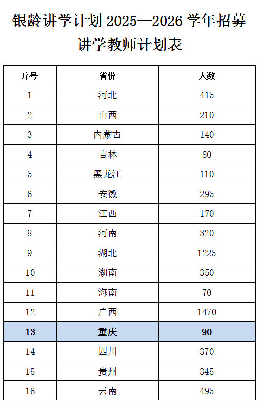 《通知》指出,2025年银龄讲学计划的实施范围以县为基本单位,主要面向脱贫地区,欠发达的民族县、革命老区县、边境县以及新疆生产建设兵团(以下简称兵团)团场等,重点向国家乡村振兴重点帮扶县、“三区三州”等地区倾斜。受援学校为县镇和农村学校。在此基础上,鼓励各省份和兵团结合实际,面向其他比较薄弱县乡地区和教育发展欠发达区域自主选拔优秀退休教师开展讲学,可酌情将普通高中纳入实施范围。