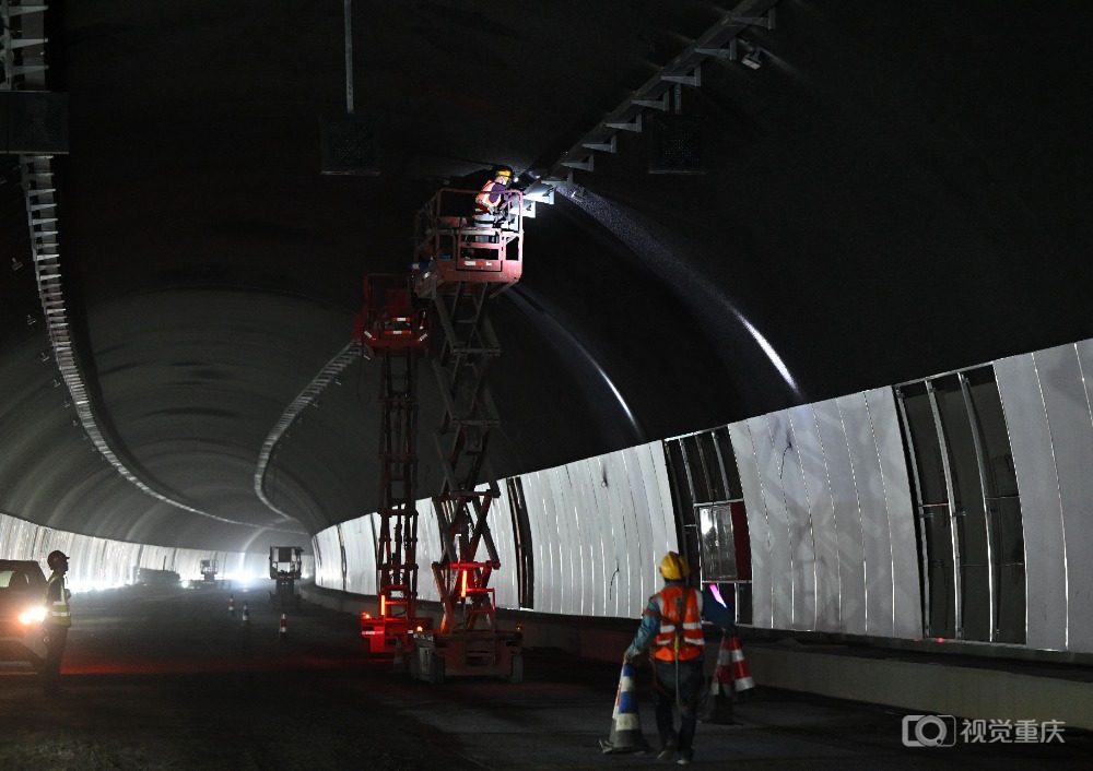 ▲2025年10月1日,江南隧道施工现场,中建五局的技术工人正在进行机电安装。 记者 罗斌 摄/视觉重庆