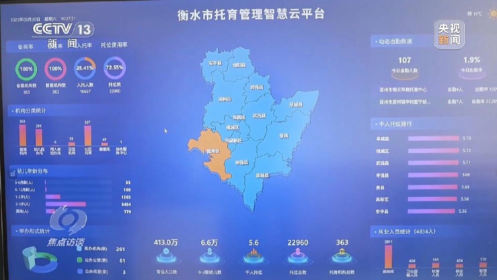 当然,生育友好是个长期工程,光把生娃的事儿捋顺还不够,还要为年轻人提供育儿保障。这些年,国家在托育支持上也没少下功夫,比如针对很多家庭存在没人帮忙看孩子的困难,有组数据就很能说明问题:截至2024年末,全国托位数达到573.7万个,比“十三五”末增长126%,翻着倍增长;我国托育服务县级覆盖率更是达到98.5%,托位数还连续三年保持20%以上的增速!要是你对数字的增长没什么感觉,那我们就走到实际场景中去看看。第二站就去河北衡水,为啥要来这里?你很快就知道了。