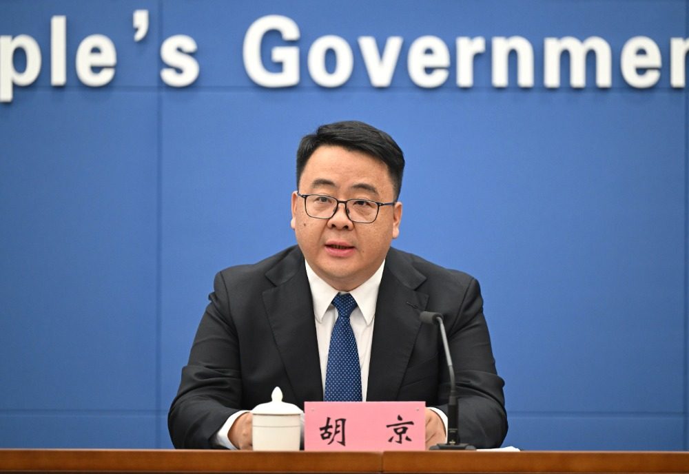 ▲市人力社保局副局长胡京答记者问。 记者 罗斌 摄/视觉重庆