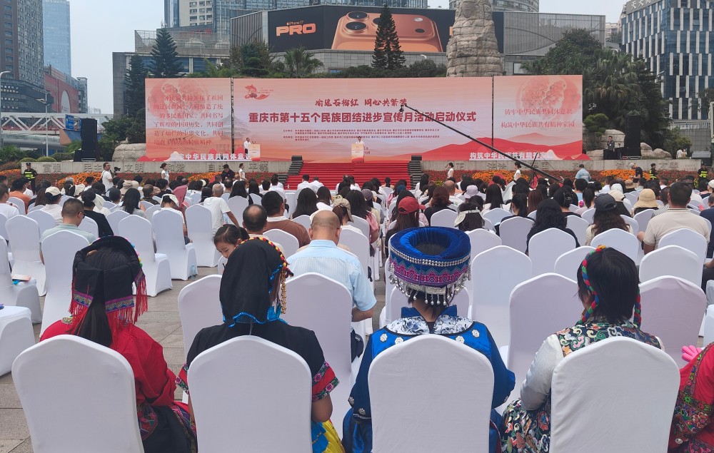 10月12日,重庆市第十五个民族团结进步宣传月活动启动仪式在江北区观音桥举行。
