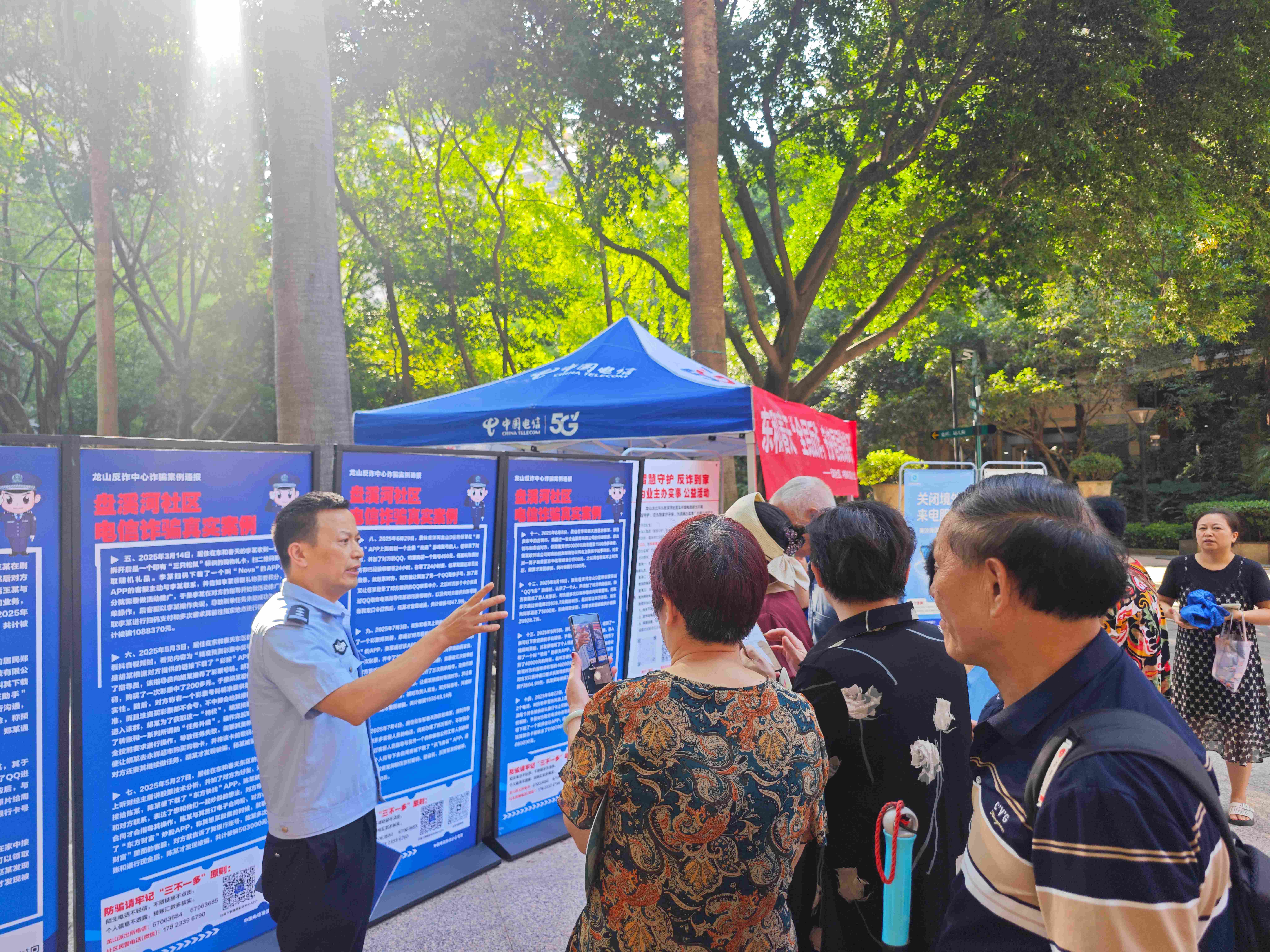 齐发力,下好“合力棋”。为扩大反诈宣传覆盖面,盘溪河社区积极联动龙山派出所、中国电信渝北分公司开展为期9日的反诈宣传进小区集中宣传活动。活动现场,驻社区民警蔡小平以“盘溪河社区真实案例”宣传展板为“教材”,结合自身办案经历,将“刷单返利”“虚假投资”“婚恋交友”“冒充抖音客服”等高发案例,向居民详细讲解骗子常用的话术和套路。工作人员则协助分发宣传资料,并针对部分老年居民对智能手机使用不熟悉的情况,手把手教其安装“国家反诈中心”APP,耐心讲解功能和操作步骤,帮助其构筑起手机端的“反诈屏障”。接下来,社区将陆续走进辖区其余5个小区,通过“社区真实案例展板+民警现场解读”的形式,将反诈知识送到居民家门口,让更多居民认清诈骗套路,共同筑牢辖区“全民反诈”的安全防线。