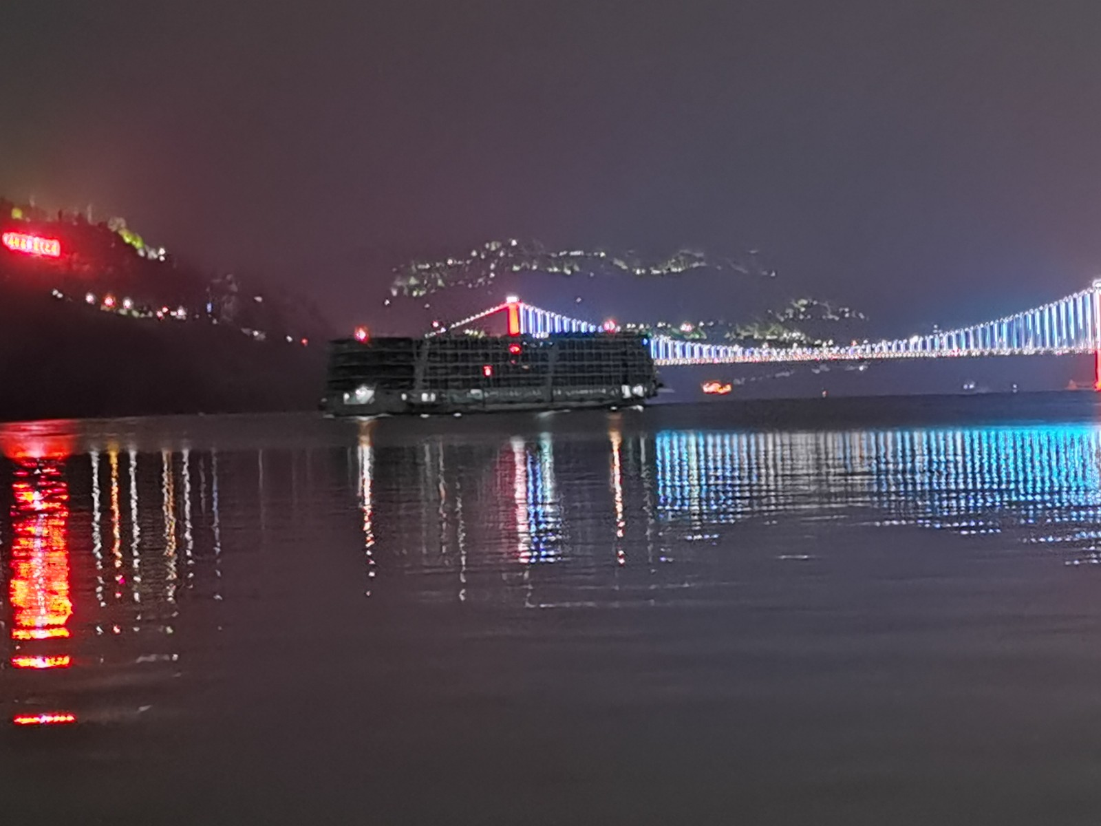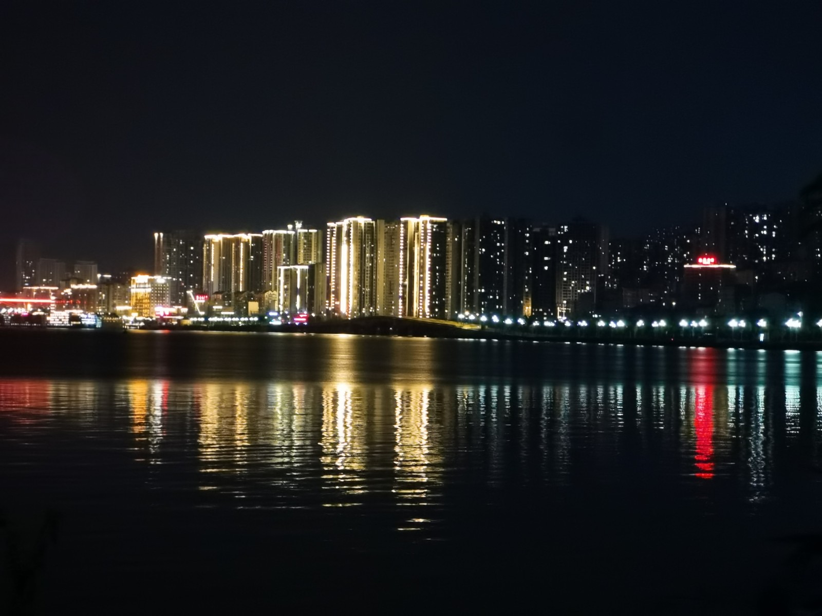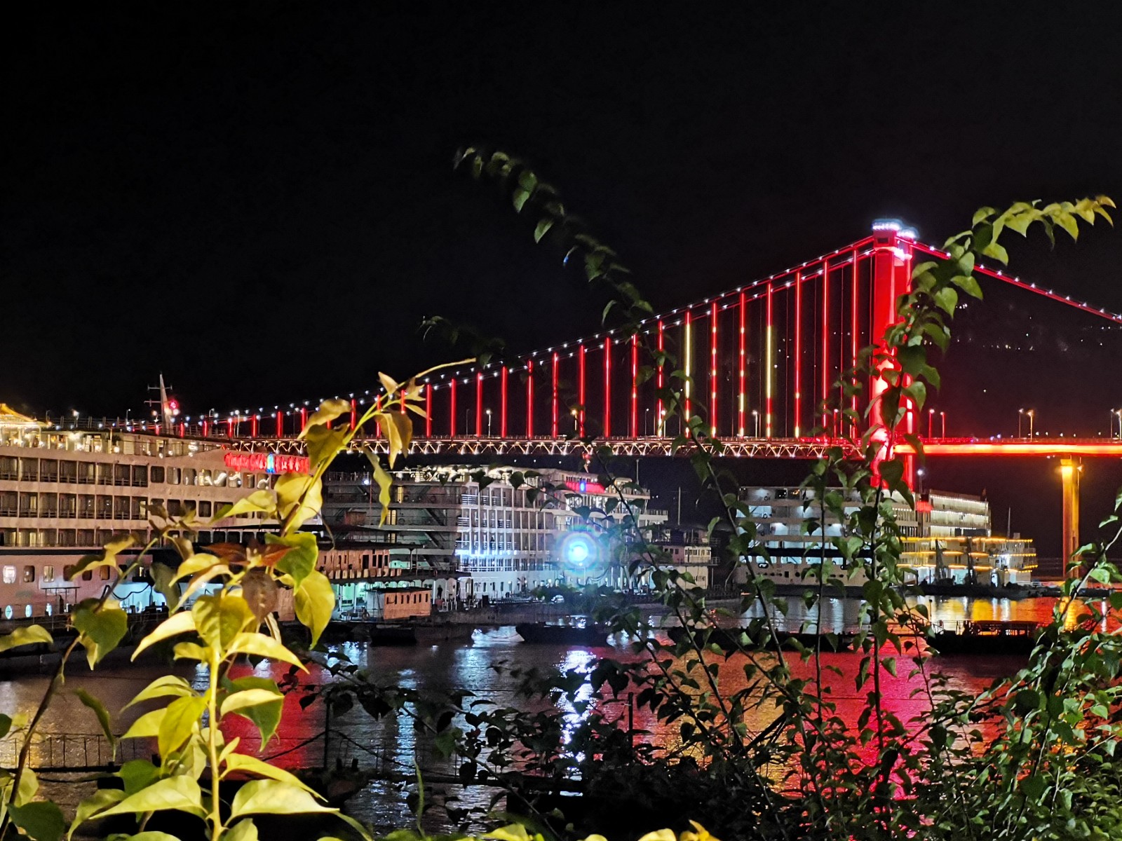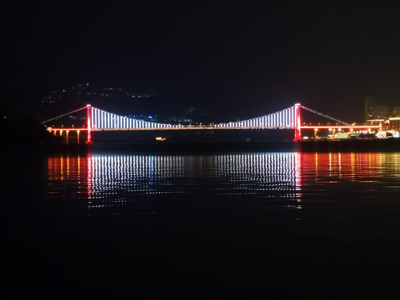 入夜后,桥上车辆川流不息,江中船舶灯火阑珊,仿佛在无边的光海中穿梭往来,为夜色中的忠州增添了无限活力与生机。天上星光与城中灯火遥相呼应,水面倒影宛若再造一座水下忠州,虚实交融,如梦似幻,令人心驰神往。