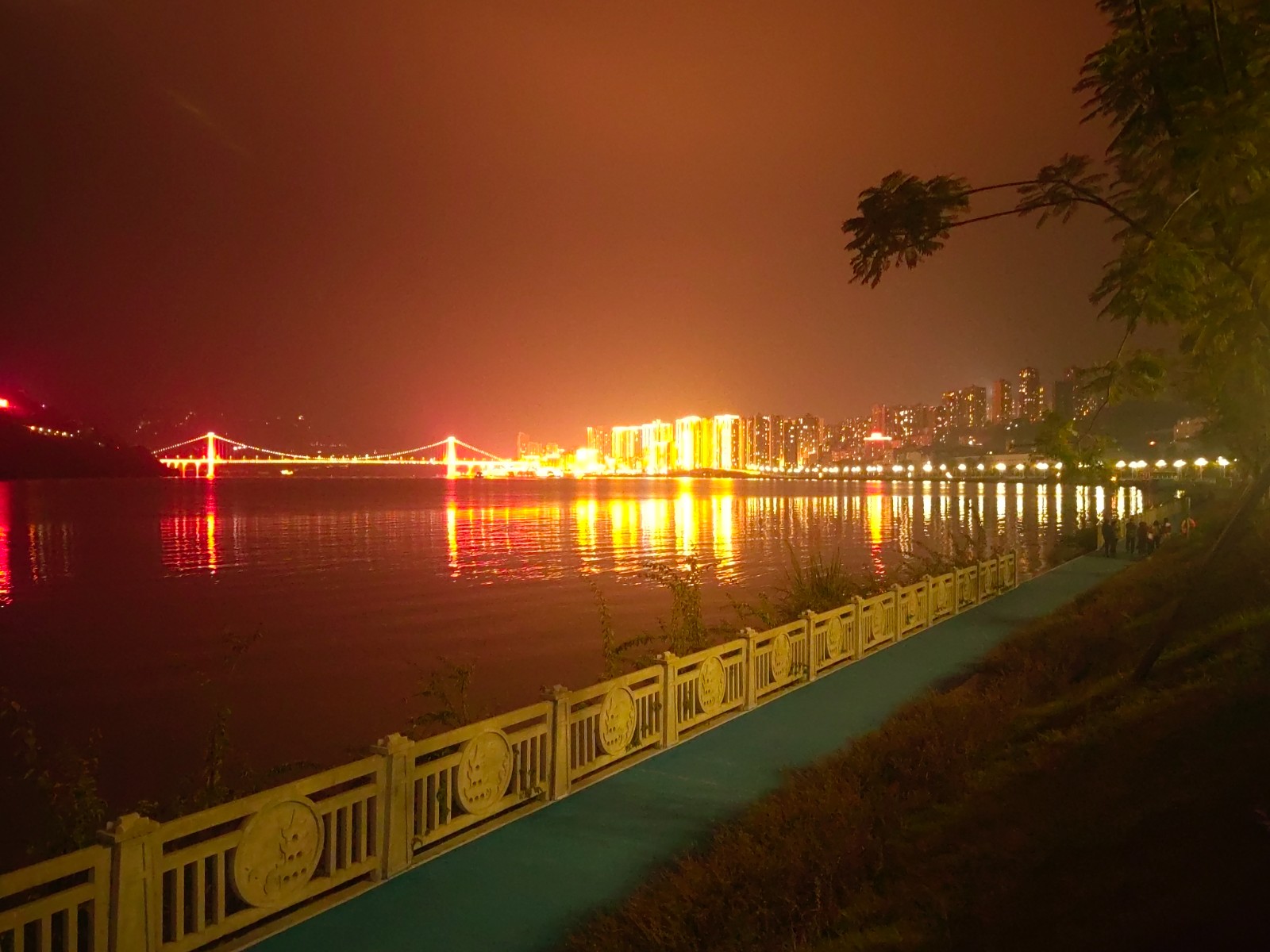 夜幕初垂,从江上远眺忠县县城,“城在水中,水绕城廓”的梦幻景致徐徐展开。华灯璀璨,倒映于静谧的湖面,营造出灯火辉煌、水天一色的醉人画面。忠县长江大桥上灯光次第点亮,犹如一条流光溢彩的游龙横跨江面,与潋滟波光交织成趣,动静相宜,恍若白昼。
