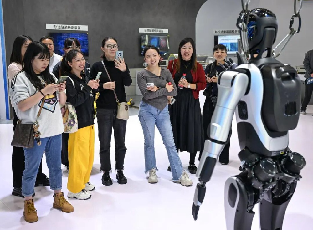 ▲10月28日,在重庆悦来国际博览中心,观众在2025年世界城市日中国主场活动主题展览区参观智能安防机器人。记者 陈诚 摄/新华社