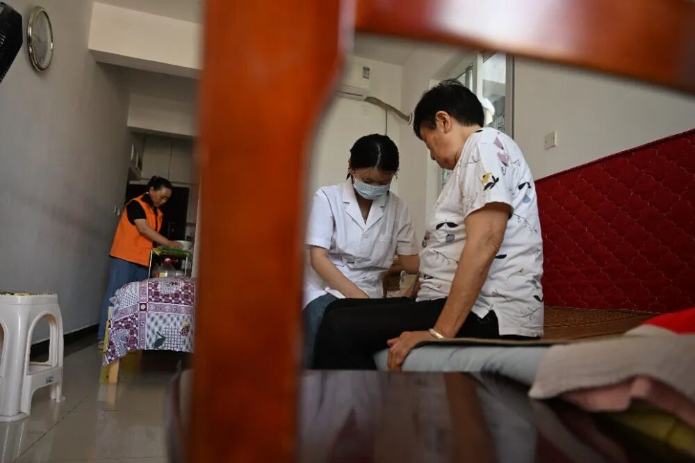 ▲6月16日,重庆市璧山区璧城街道杨柳坝社区香江嘉园小区,工作人员在老人家中为老人提供清洁、体检服务。记者 崔力 摄/视觉重庆