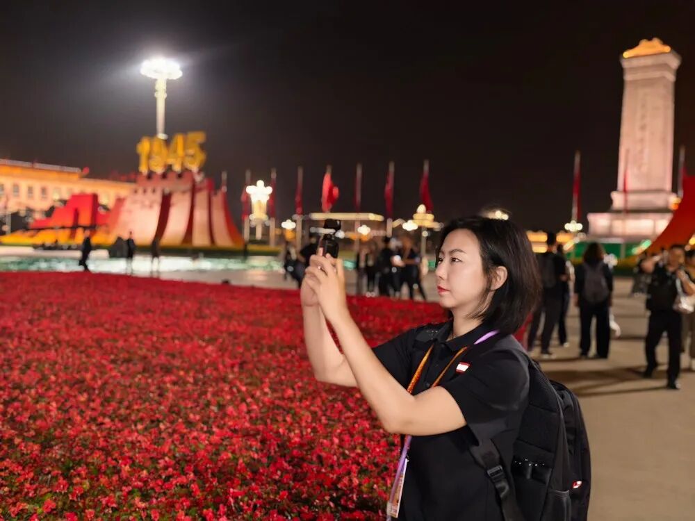 ▲重庆日报首席记者周尤采访报道纪念中国人民抗日战争暨世界反法西斯战争胜利80周年大会。/新重庆-重庆日报