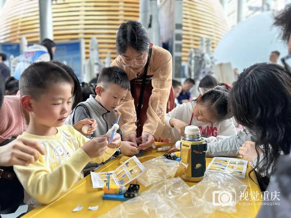 2024年5月3日,重庆科技馆,小朋友在制作卫星模型。记者 张亦筑 摄/视觉重庆