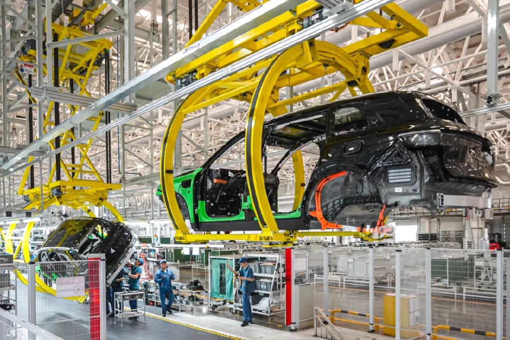 11月4日,两江新区赛力斯超级工厂,车身被自动化设备吊入总装线。记者 李雨恒 摄/视觉重庆
