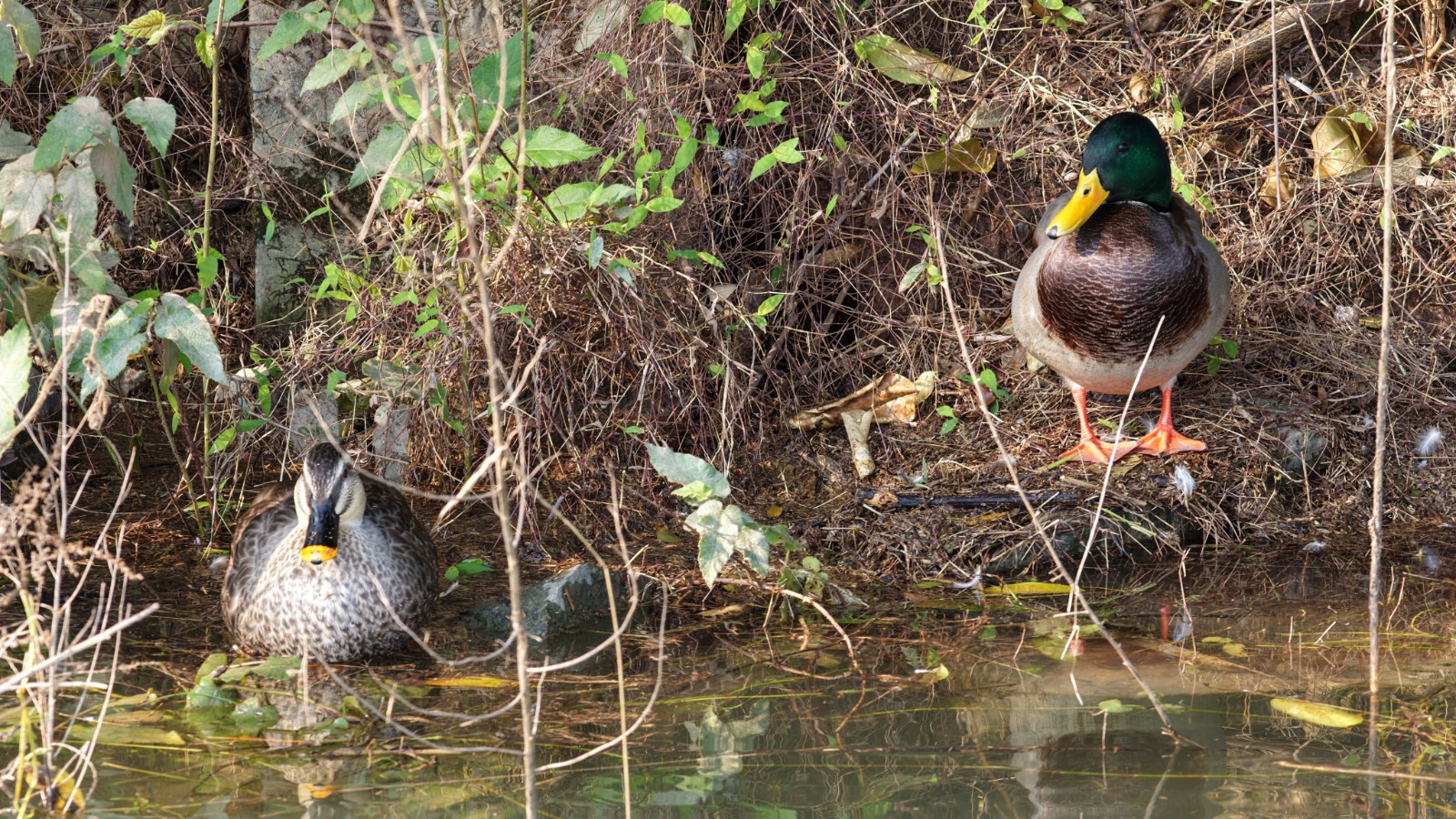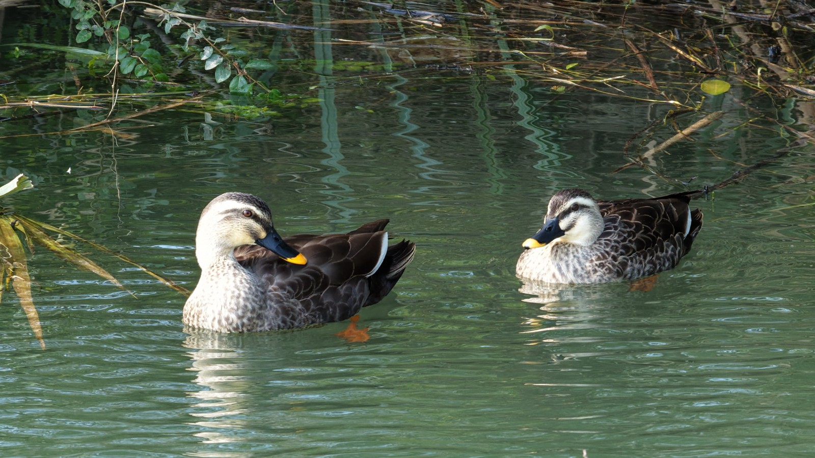 栖息在东溪河湿地中的斑嘴鸭河绿头鸭。赵军 摄