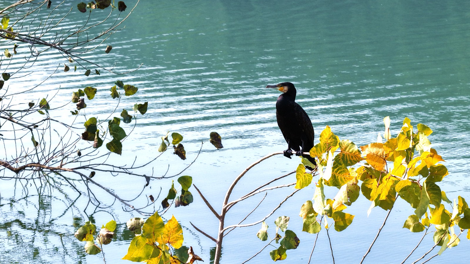 一只鸬鹚伫立在东溪河湿地的树枝上。赵军 摄