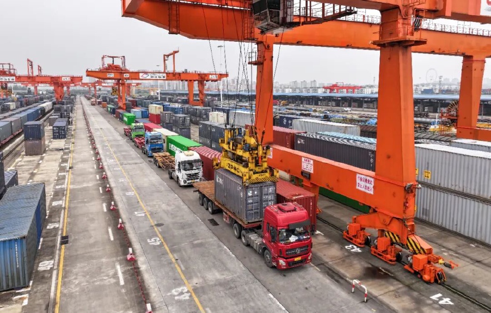 7月10日,首趟“东盟快班”回程班列在沙坪坝团结村铁路集装箱中心站中转,标志着这条贯通欧亚的物流新通道实现双向对开。通讯员 郭晋 摄/视觉重庆