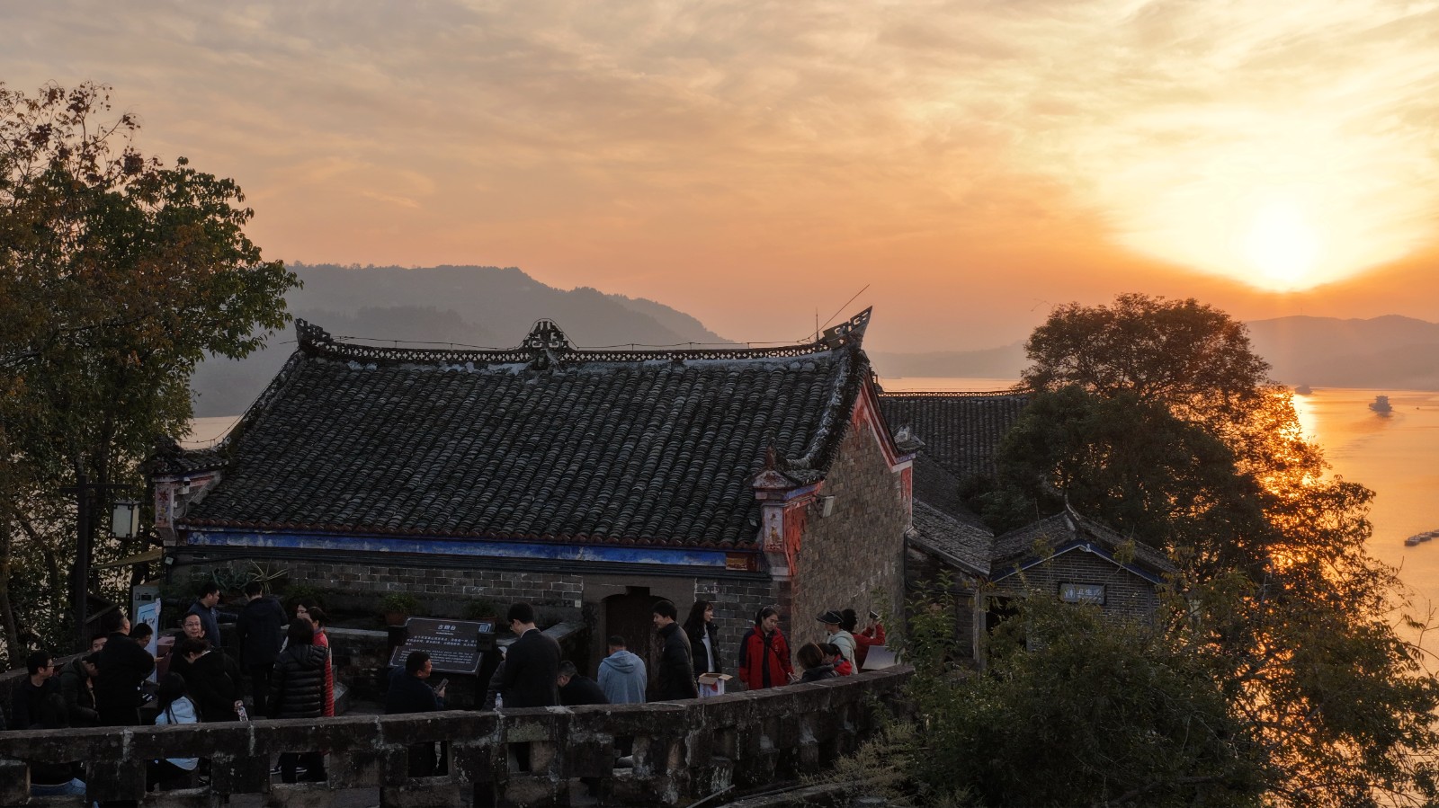 初冬时节,三峡水库蓄水至175米左右,忠县石宝寨四面环水,秀美如画,各地游客慕名前来探访石宝寨悠久的历史文化,感受万里长江的壮阔之美。
