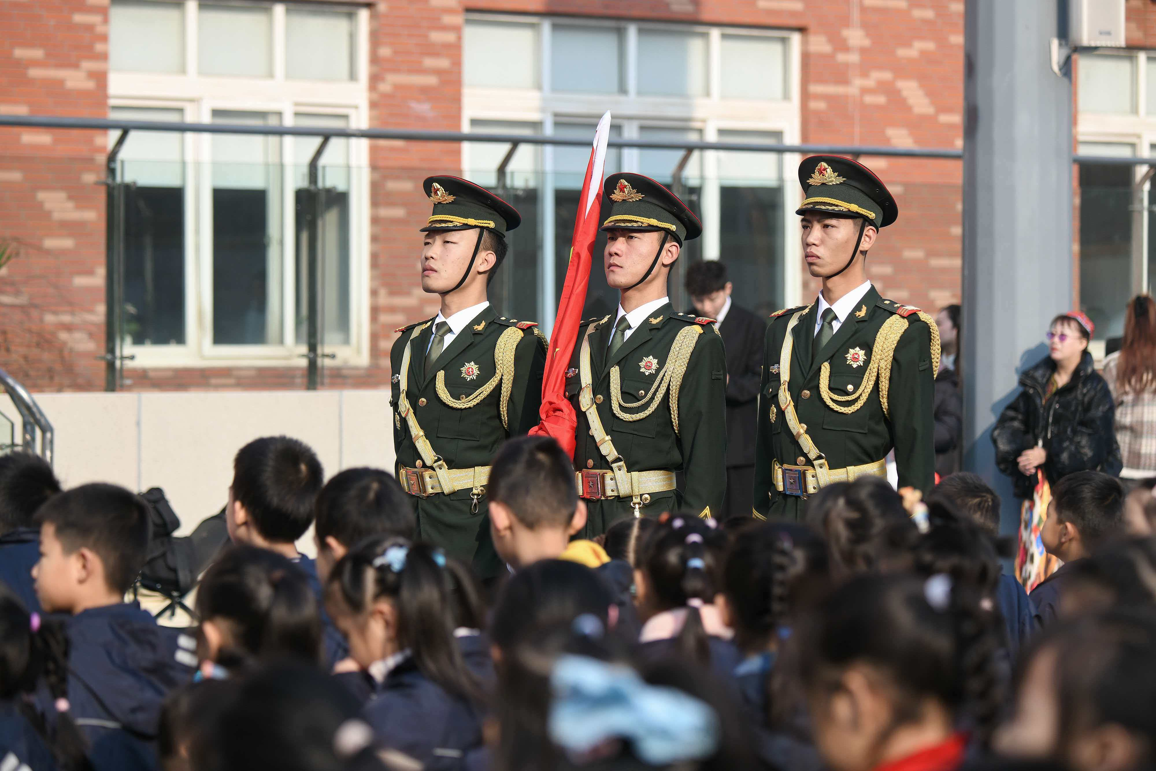 上午9点40分,活动在充满朝气的开场节目中拉开序幕。中国人民解放军仪仗司礼大队队员迈着整齐有力的步伐护卫国旗入场,他们挺拔的军姿展现出中国军人的风采。在雄壮的国歌声中,五星红旗冉冉升起,全体师生肃立行礼,目光凝视着迎风飘扬的国旗,现场气氛庄重肃穆。