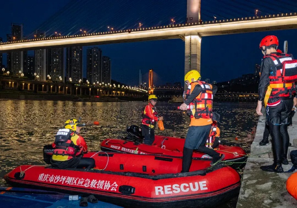 沙坪坝区中渡口码头,方舟应急救援队队员轮流上船巡逻。记者 张锦辉 摄/视觉重庆