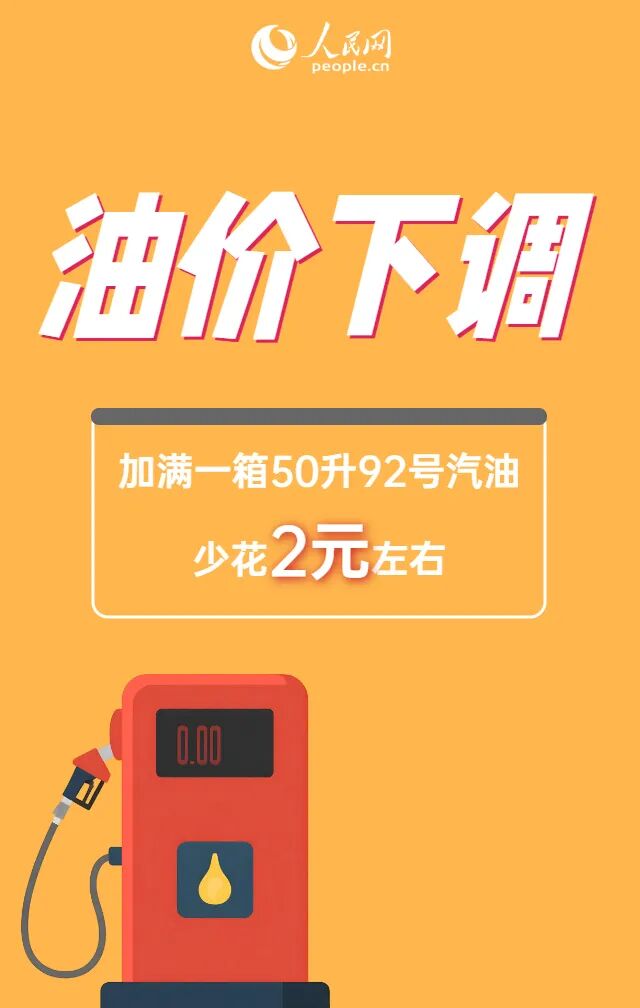 据国家发展改革委网站消息,近期国际市场油价波动运行,根据12月8日的前10个工作日平均价格与上次调价前10个工作日平均价格对比情况,按照现行成品油价格机制,自12月8日24时起,国内汽、柴油价格(标准品,下同)每吨均降低55元。按此计算,加满一箱50升的92号汽油,将少花2元左右。